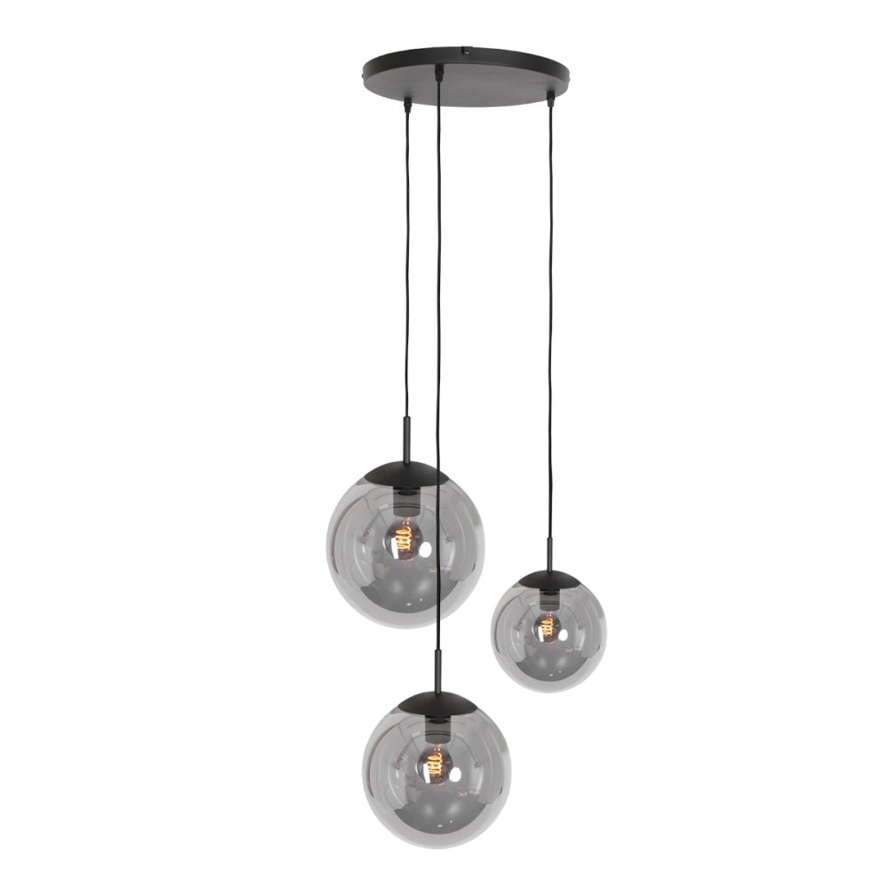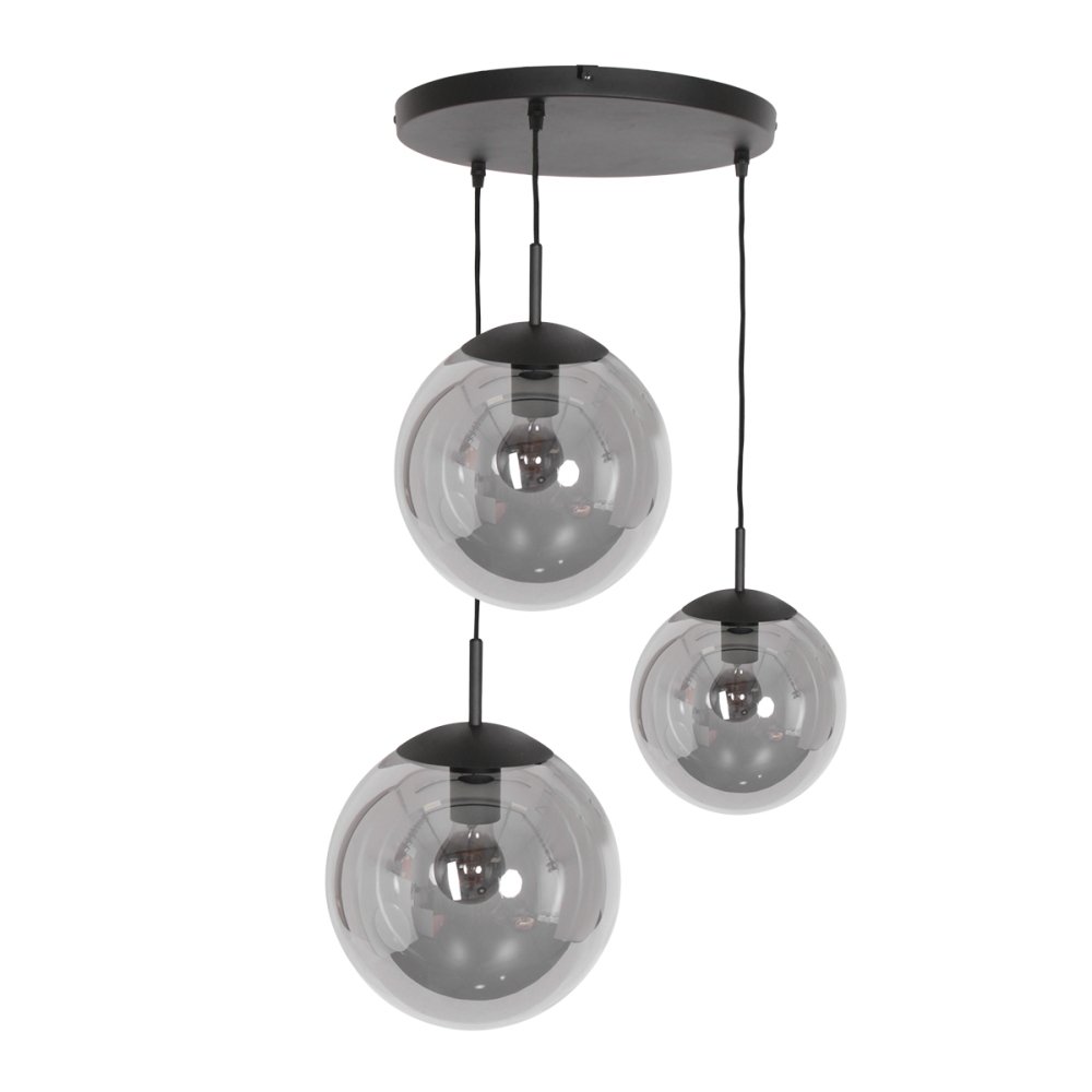 The pendant light BOLLIQUE is an elegant and modern lighting solution for your home. With three E27 sockets, it provides sufficient brightness for various rooms. The black matte design combined with the partially mirrored smoked glass gives the light a stylish appearance.