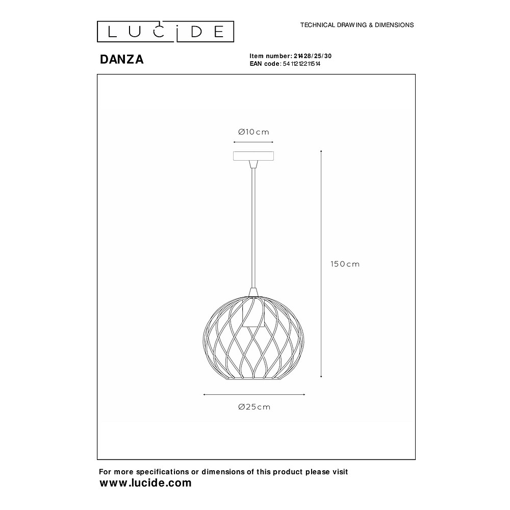The Belgian company Lucide stands for high-quality lights with modern design. The pendant light DANZA impresses not only with its appearance but also with its construction from durable materials. With protection class 2 and easy power supply via adapter or mains, it is a practical and stylish lighting solution.