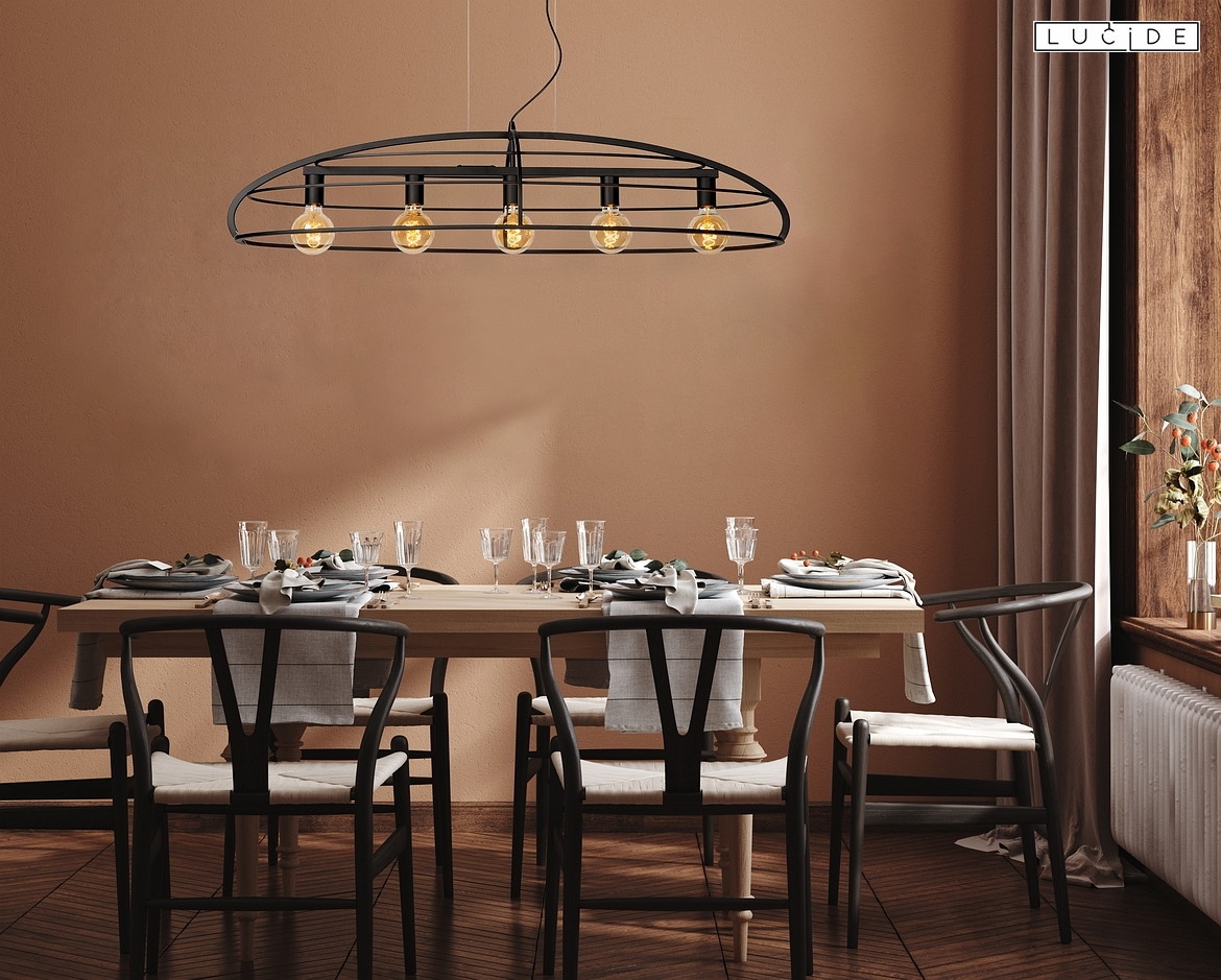pendant luminaire DIKRA 5 flames, oval E27 IP20, black