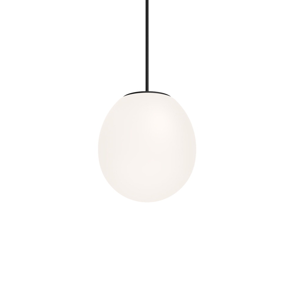 The pendant light DRO SUSPENDED 2.0 from Wever & Ducré impresses with its modern design and high-quality materials. The oval diffuser is made of Italian mouth-blown opal glass, while the body is made of matte black aluminum die-casting. The textile-covered cable completes the elegant appearance.