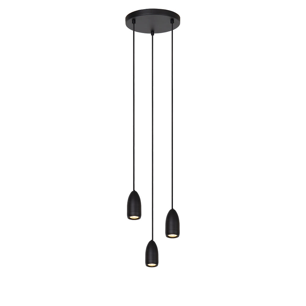 pendant luminaire EVORA 3 flames, round GU10 IP20, black matt dimmable