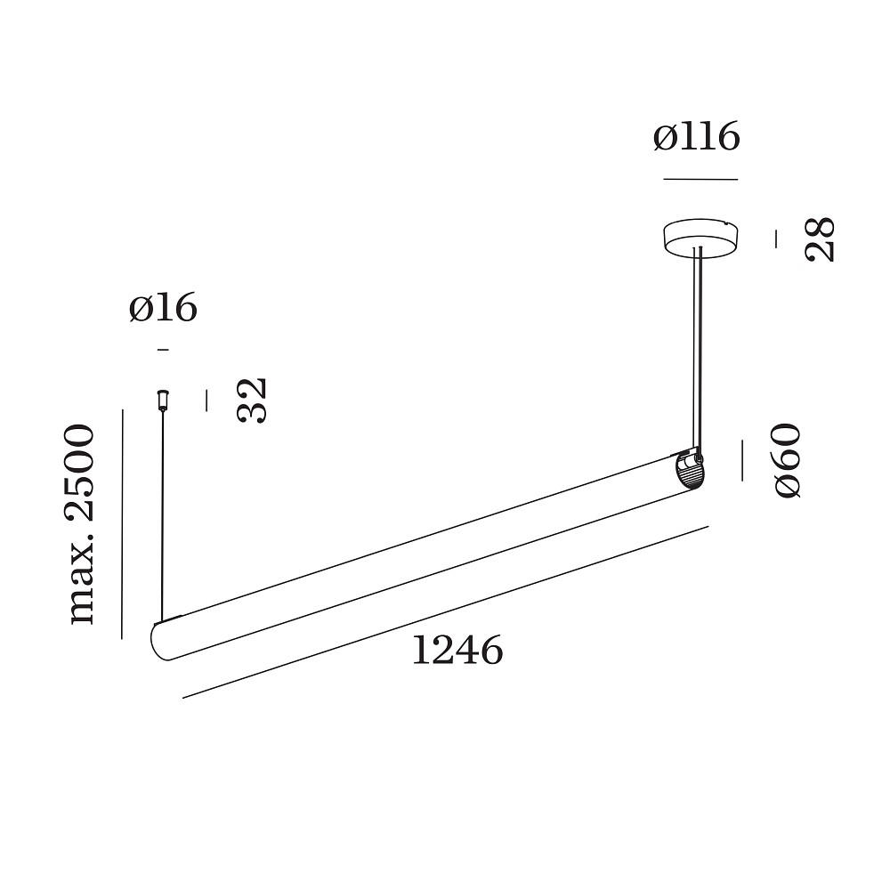 luminaire body-Ø∕ L: 6∕ 124,6 cm