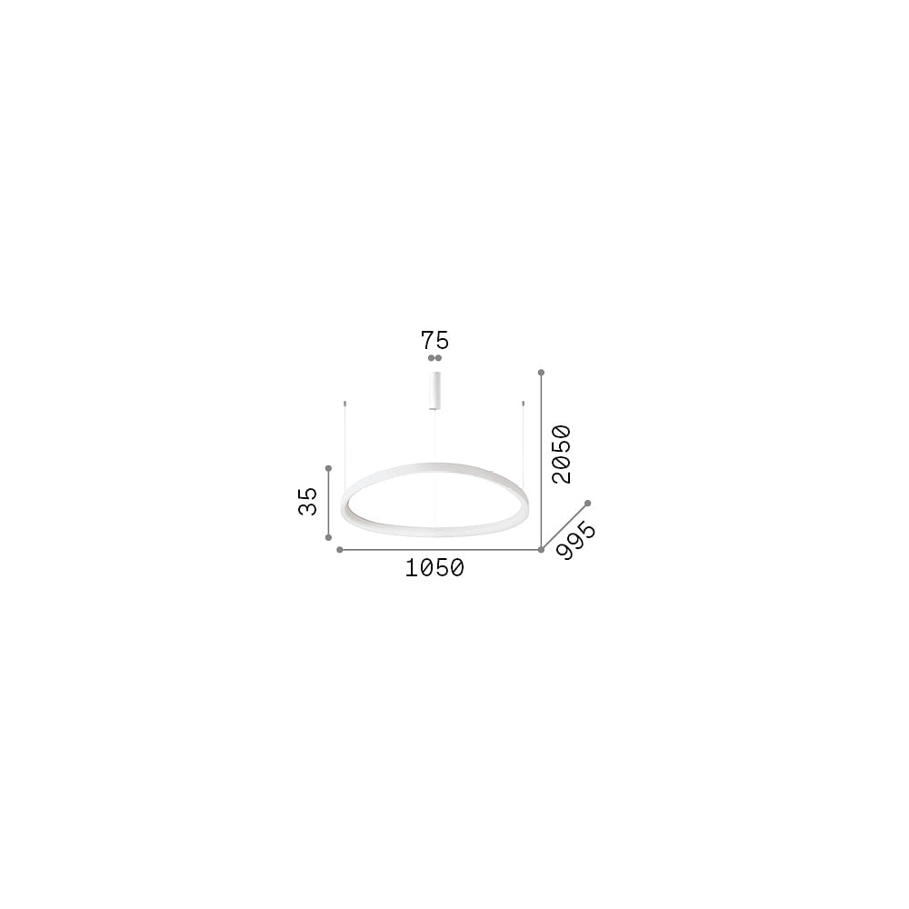 The design of the pendant light GEMINI D105 ON-OFF is modern and elegant. The pendant length is adjustable and is standard at 230cm. The size of the luminaire body is 105 x 99.5 x 3.5 cm, the total height is 205 cm, and the canopy has a diameter of 7.5 cm. With a weight of 3.1kg, the pendant light is easy to install and assemble.
