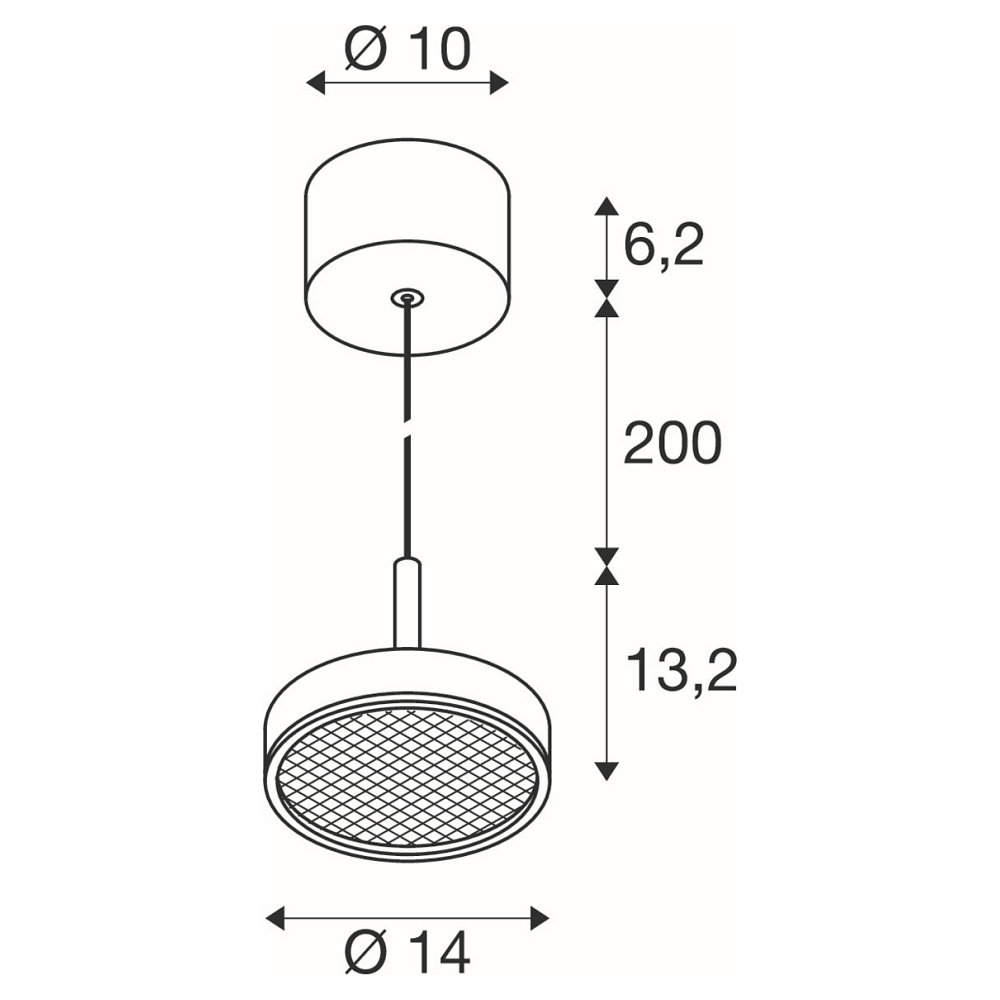 The LED pendant light GRIP! FLAT impresses with its slim and contemporary design. With a diameter of 14 cm and a height of 13.2 cm, this light fits harmoniously into a variety of room concepts. The pendant length of 200 cm is also adjustable, allowing you to customize the light individually to your needs. The low weight of only 1.046 kg enables easy installation and handling.