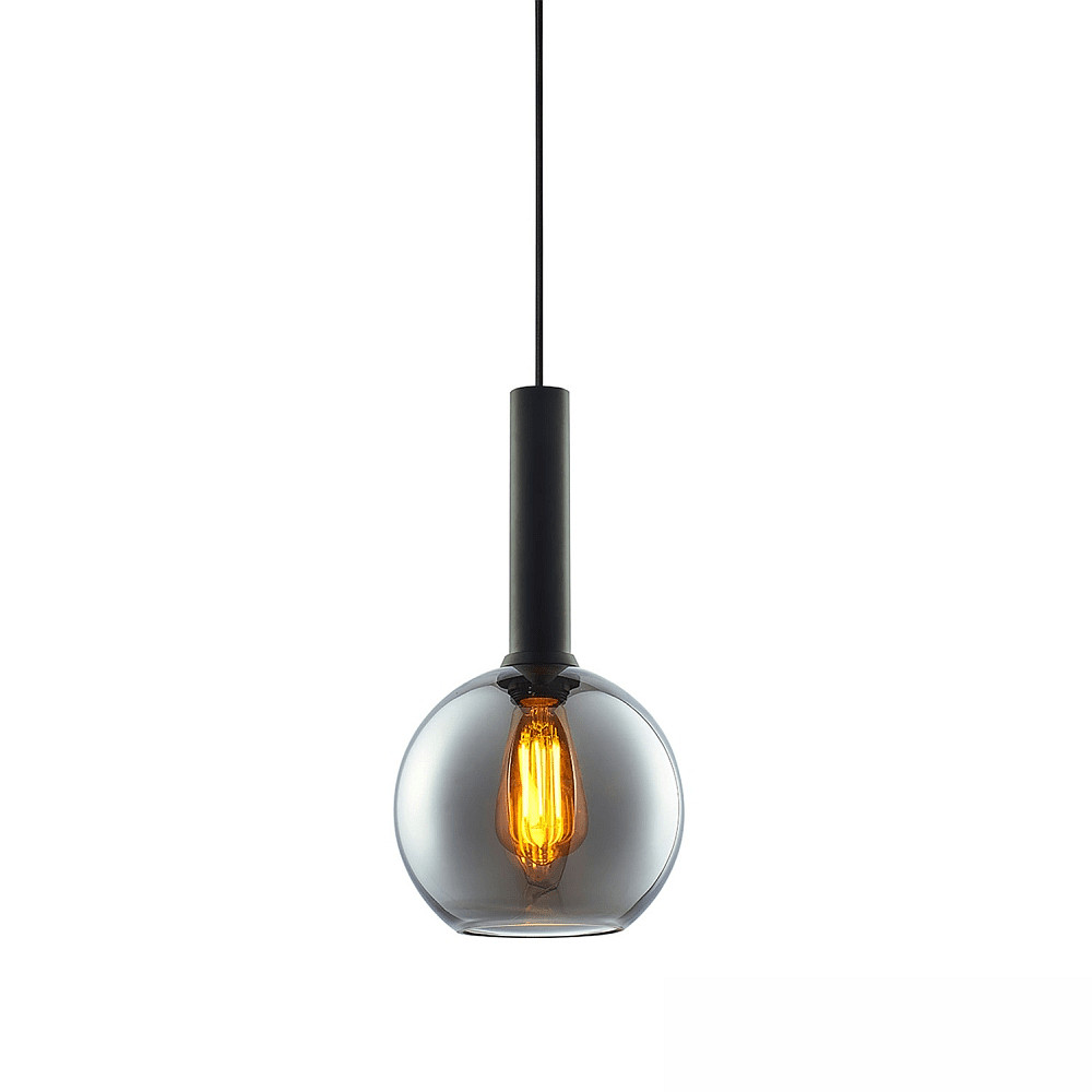 pendant luminaire INFINITY BLACK ROUND GLASS 20CM round E27 IP20, smoky colour, black dimmable