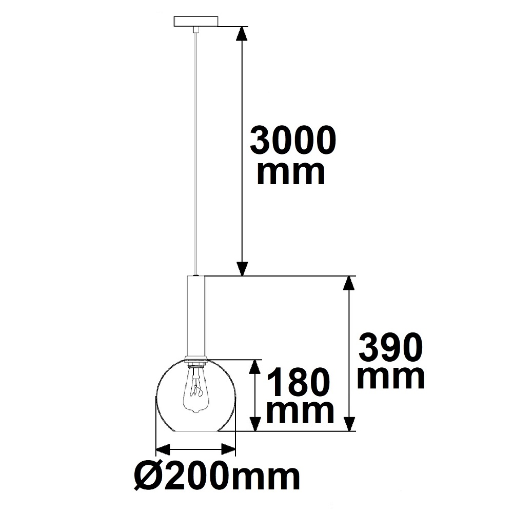 The pendant lamp is equipped with an E27 socket, allowing for a wide selection of bulbs. It operates at a voltage of 220-240V~ and is designed for a mains frequency of 50/60Hz. Protection class 1 ensures safe usage, while the IP20 rating provides protection against solid foreign objects. The lamp weighs 0.815 kg and is suitable for ambient temperatures from 0 to +45°C. Overall dimensions are 20 cm in diameter and 39 cm in height.