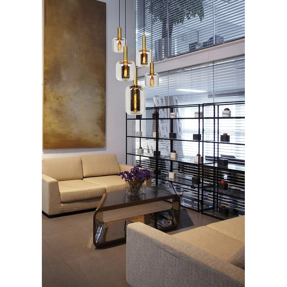 pendant luminaire JOANET 5 flames, round E27 IP20, gold matt, brass, smoky colour
