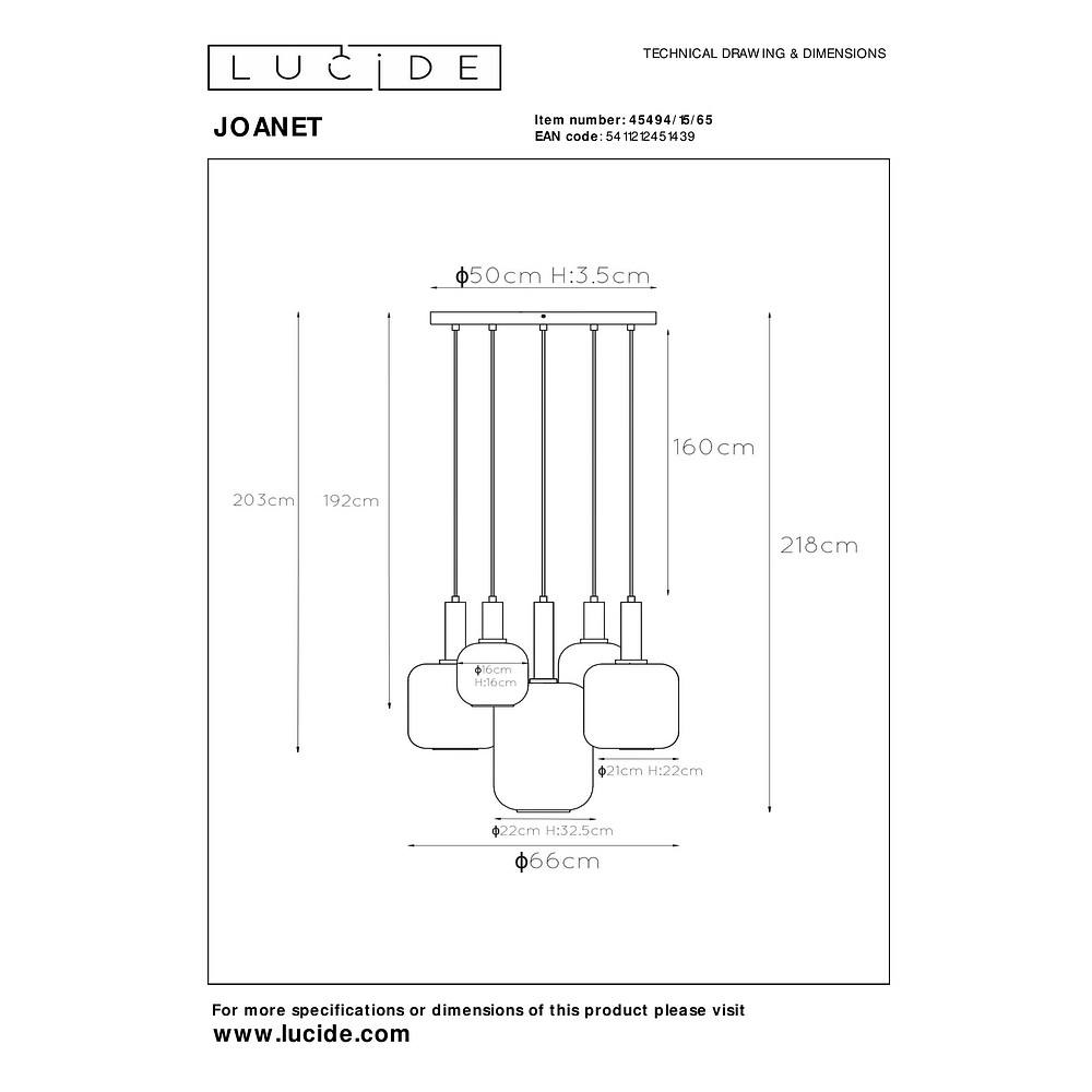 The pendant light JOANET is operated with an adapter/power connection and can be individually adjusted in height during installation. With its modern design and high-quality craftsmanship, this light from Lucide is the perfect choice for those looking for a stylish and functional lighting solution.