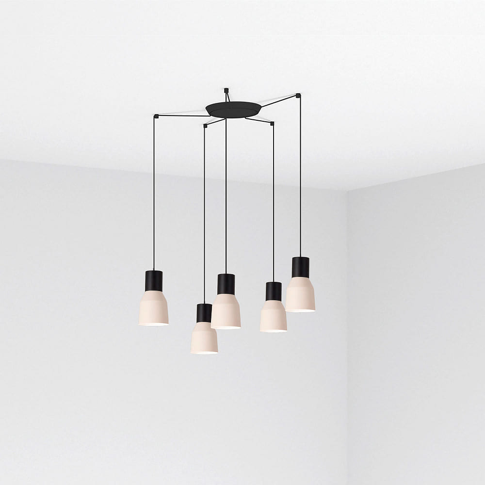 pendant luminaire KOMBO 5 flames E27 IP20, beige, black matt