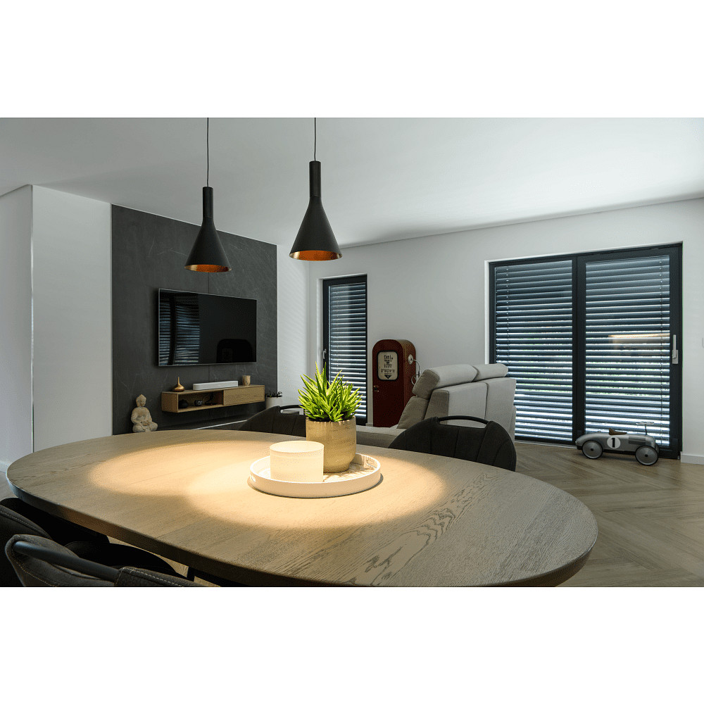 With a color rendering index of 90 to 100 Ra, the LALU® pendant light guarantees natural and brilliant color reproduction. The light thus appears particularly pleasant and true to life. The fixture is also dimmable via DALI or DALI-2, allowing seamless brightness adjustment. This way, you can flexibly adapt the lighting atmosphere to different situations and moods.