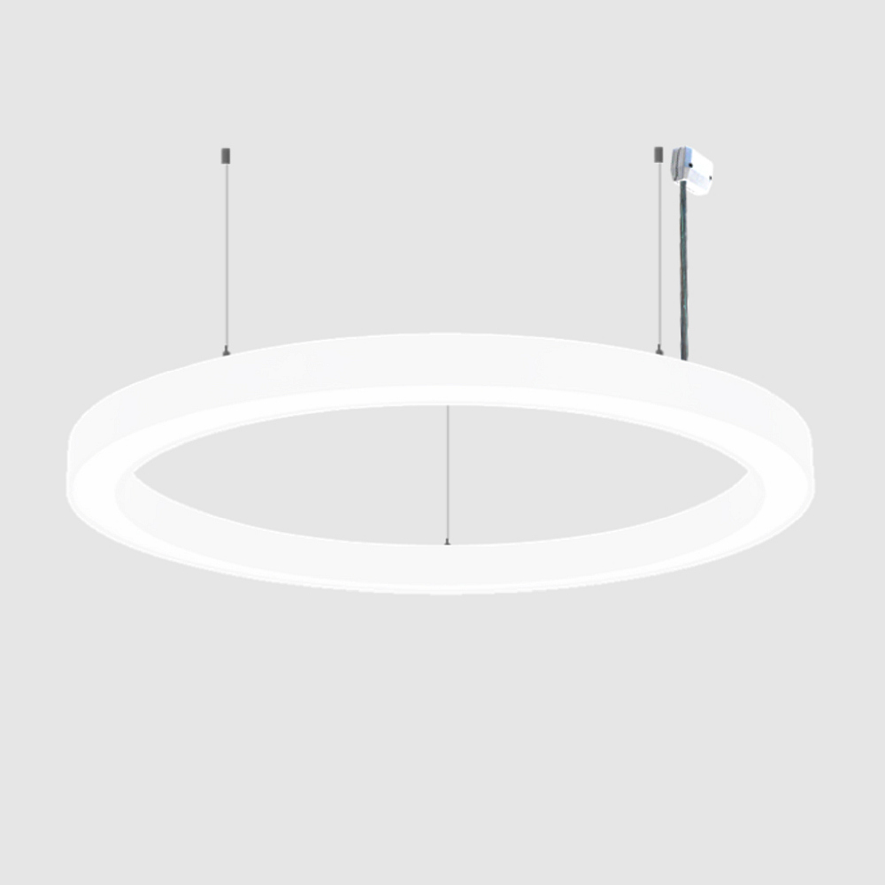 Thanks to the integrated switch and multi-dimmer function, the light can be conveniently and flexibly controlled. In addition to individual brightness adjustment, the color temperature can also be set directly on the fixture. The pendant length can be shortened to 125 cm, allowing the light to be optimally adapted to different ceiling heights. These features make the LED pendant ring light a versatile and user-friendly lighting solution.