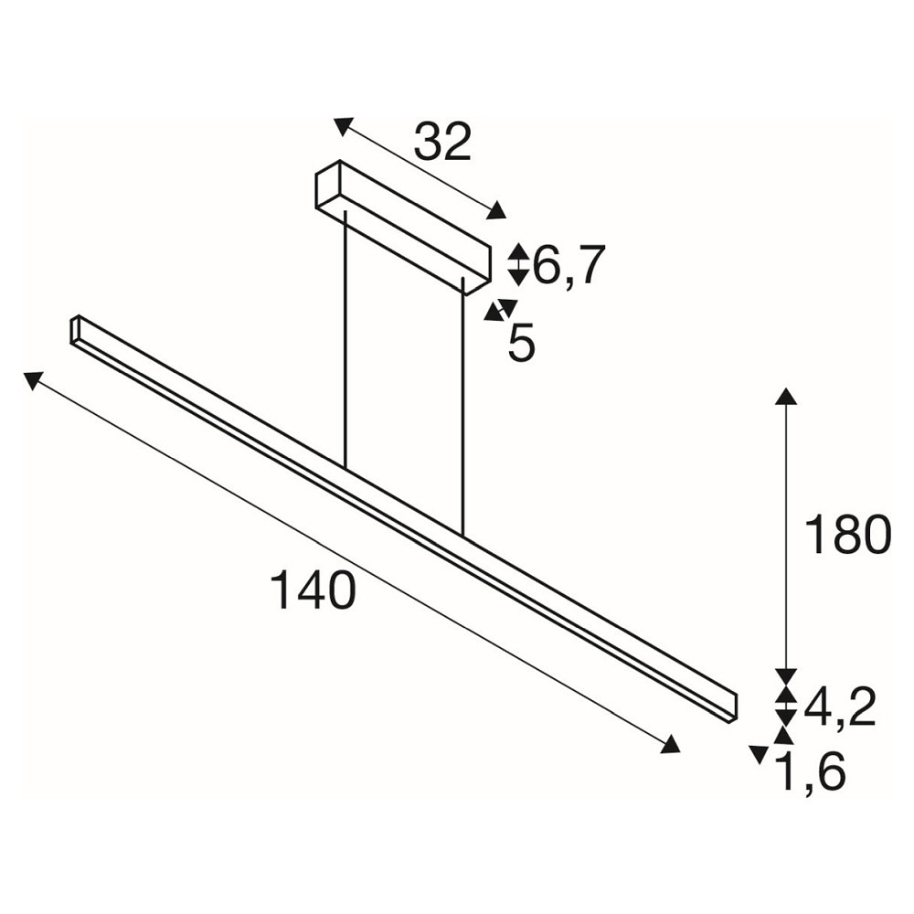 The LED pendant light ONE LINEAR 140 PHASE UP/DOWN has a length of 140 cm and an operating voltage of 220-240V~. The luminaire body measures 140 x 1.6 x 4.2 cm, while the canopy measures 32 x 5 x 6.2 cm. With a power consumption of 35W and a weight of 2.04 kg, it is ideal for indoor use.