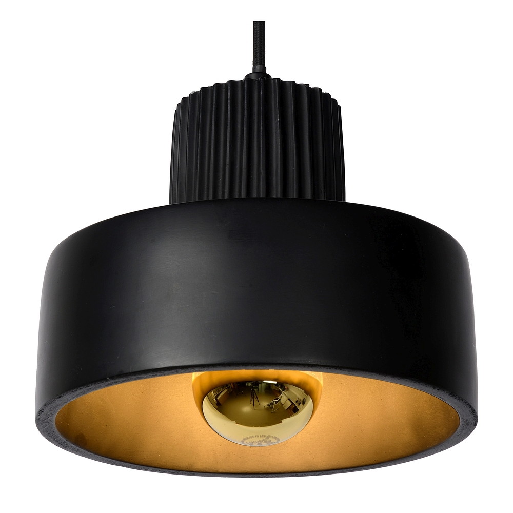 The pendant light OPHELIA is a true gem for any room. With a diameter of 20 cm and a height of up to 150 cm, it offers an elegant lighting solution for your home. The shade made of concrete, metal, and fabric in black color gives the light a modern and noble look.
