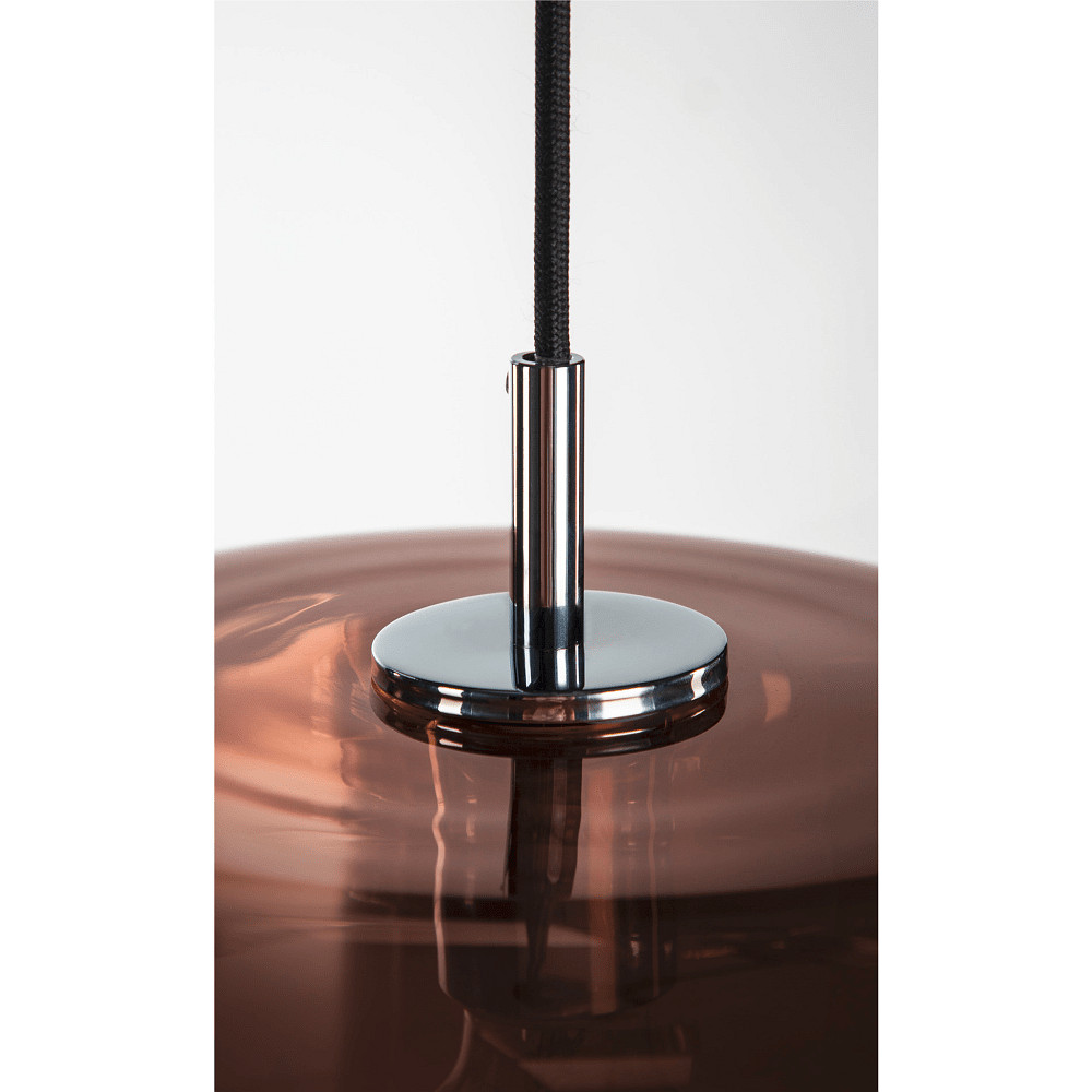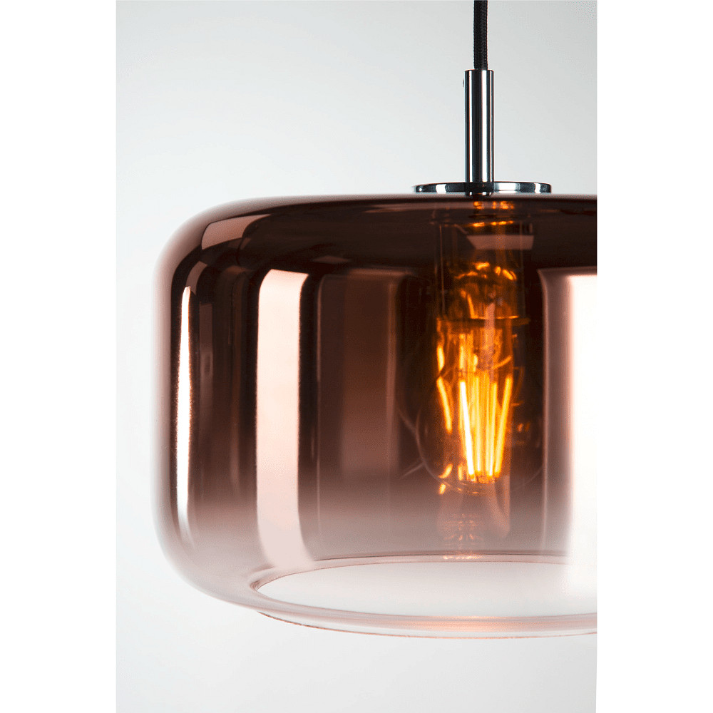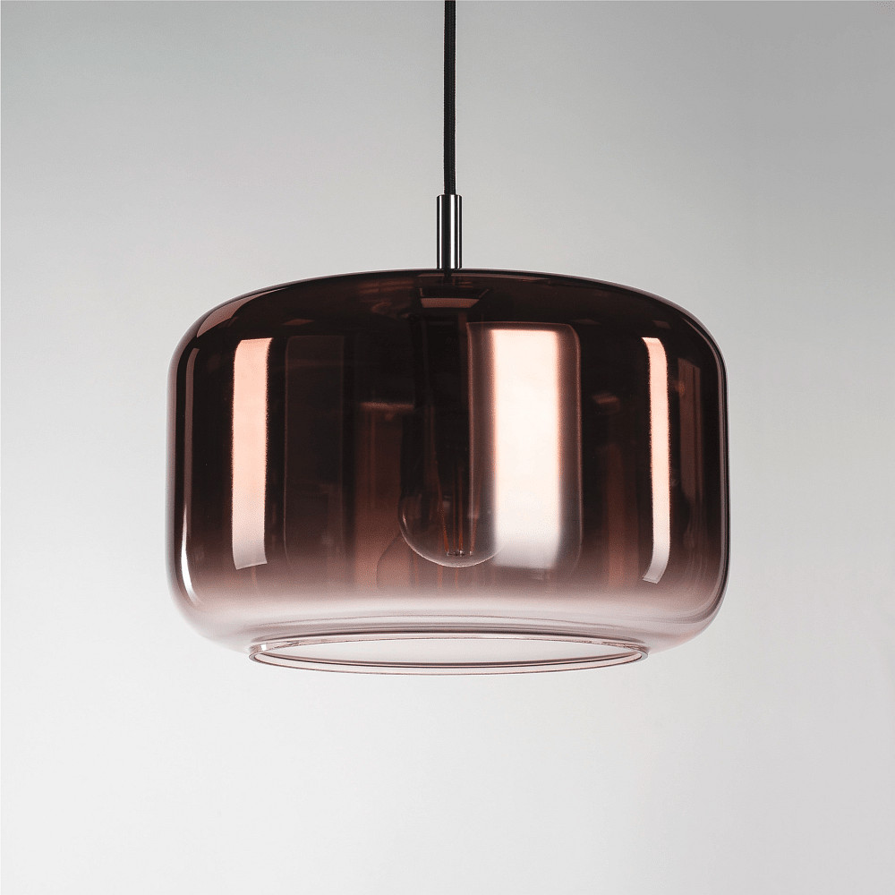 The pendant light PANTILO 28 has an operating voltage of 200-240V~ and a power consumption of 15W. It features an E27 socket for the light bulb, which is not included. The material of the light is high-quality glass and the color is an elegant copper.