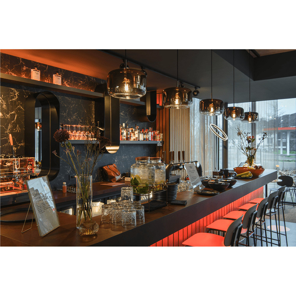 With a weight of only 1.3 kg, the pendant light PANTILO 28 is easy to mount and install. The elegant copper color adds a warm and cozy atmosphere to your space, while the open cable end offers the possibility to customize the light to your liking.