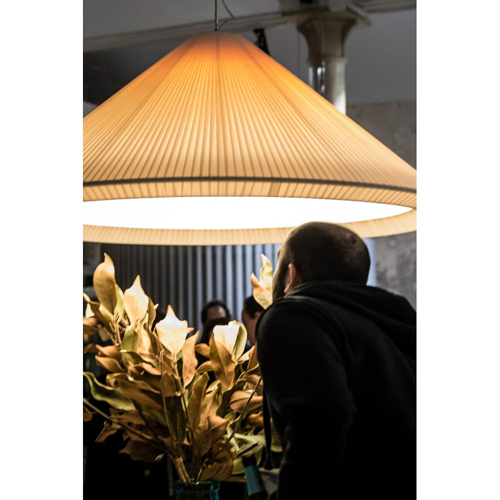 The pendant light SAIGON IN is an elegant and modern lighting element for your indoor area. With a diameter of 130 cm and a height of 236 cm, this light is a real eye-catcher in any room. The matte black color combined with ivory textile shades gives it a noble and timeless look.