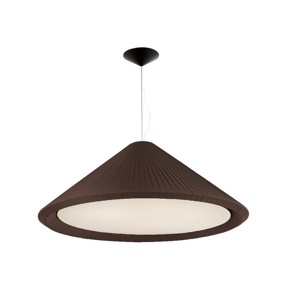 The SAIGON IN pendant light from FARO BARCELONA is a real eye-catcher for any room. With a diameter of 130 cm and a pendant length of up to 236 cm, it can be individually adjusted. The brown steel frame combined with the matte black fabric shade gives the light a modern and elegant design.