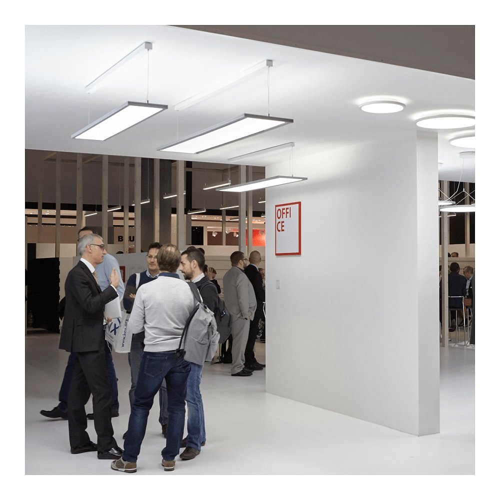 The LED pendant light SL720+ PL MP S/C from Performance in Lighting is a high-quality lighting solution for ceiling installation. With a power consumption of 69W and a luminous flux of 8950lm, it provides excellent lighting for the work area. Thanks to the warm white light color and the direct and indirect light distribution, the luminaire is particularly suitable for screen workstations.