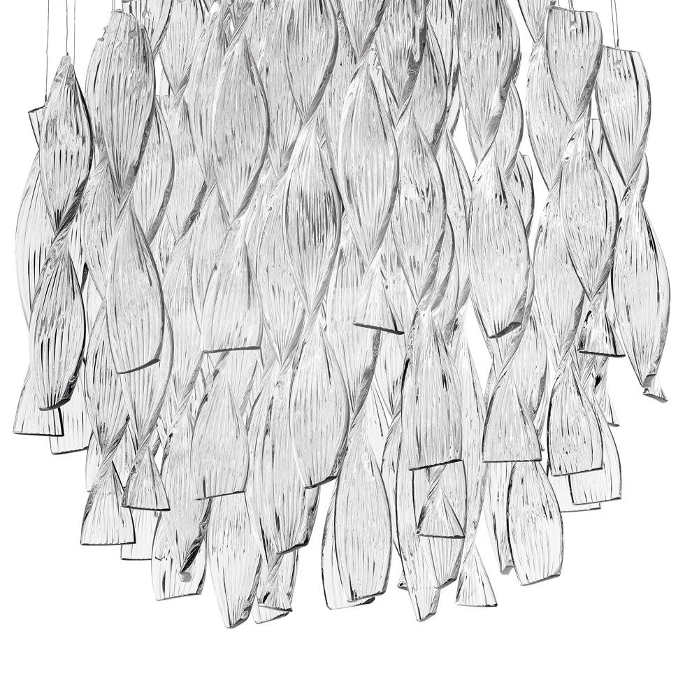 The SP AURA 60 pendant light is made of handcrafted double-layered Murano glass, giving it a unique and noble appearance. The chrome finish provides a modern look, while the clear glass ensures bright and friendly lighting. With a weight of 28kg, this pendant light is sturdy and durable.