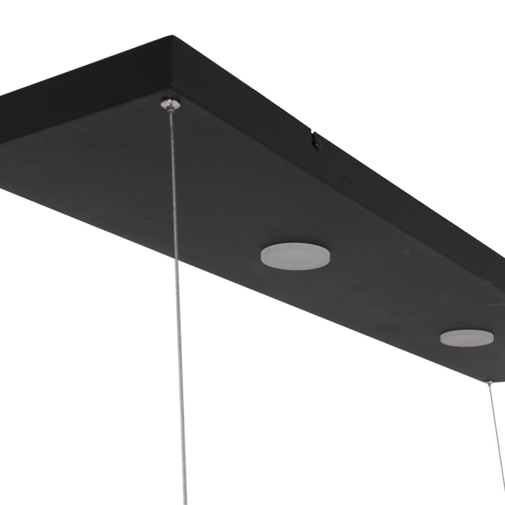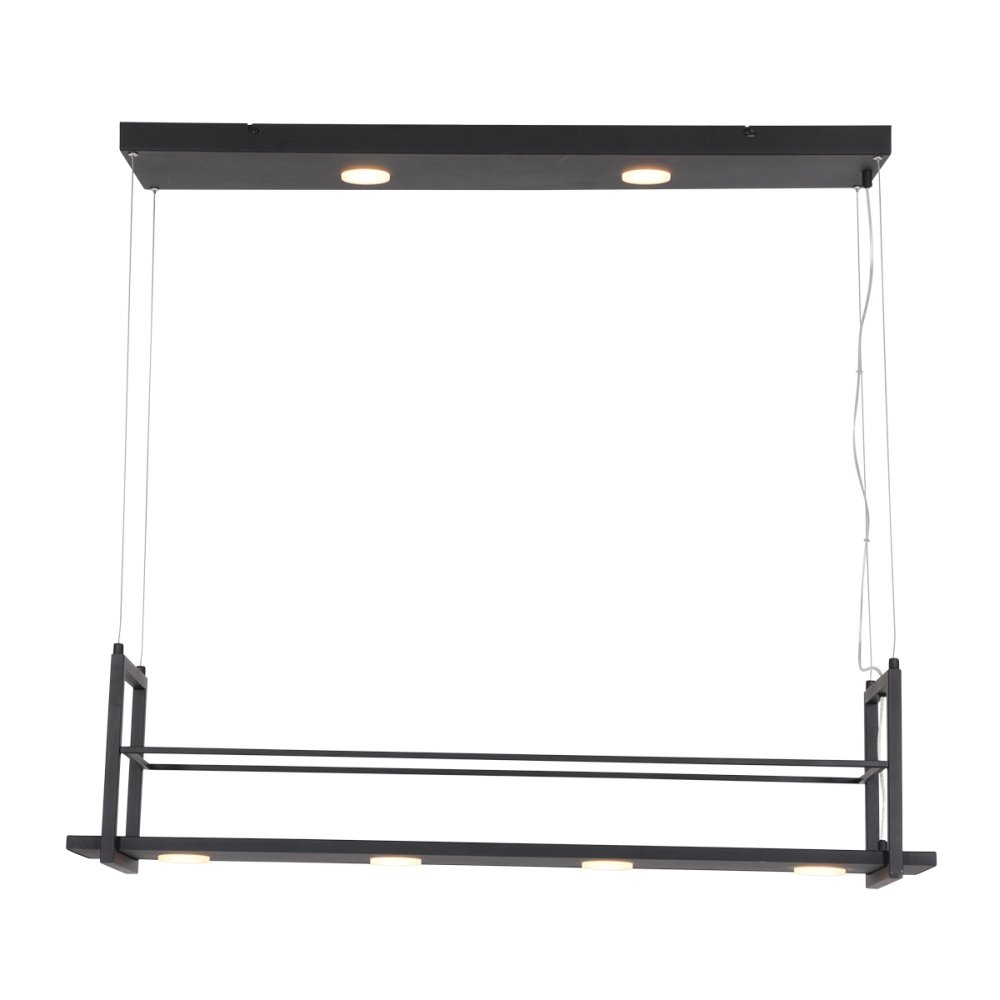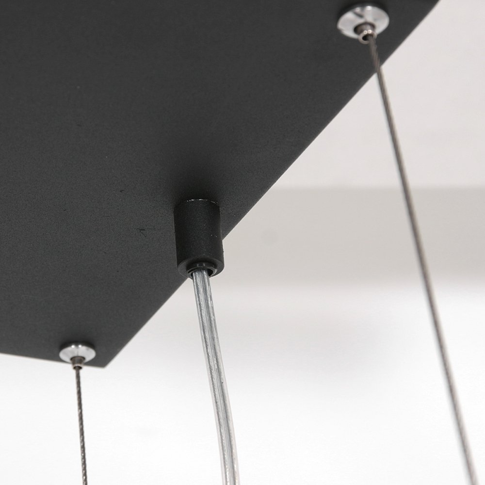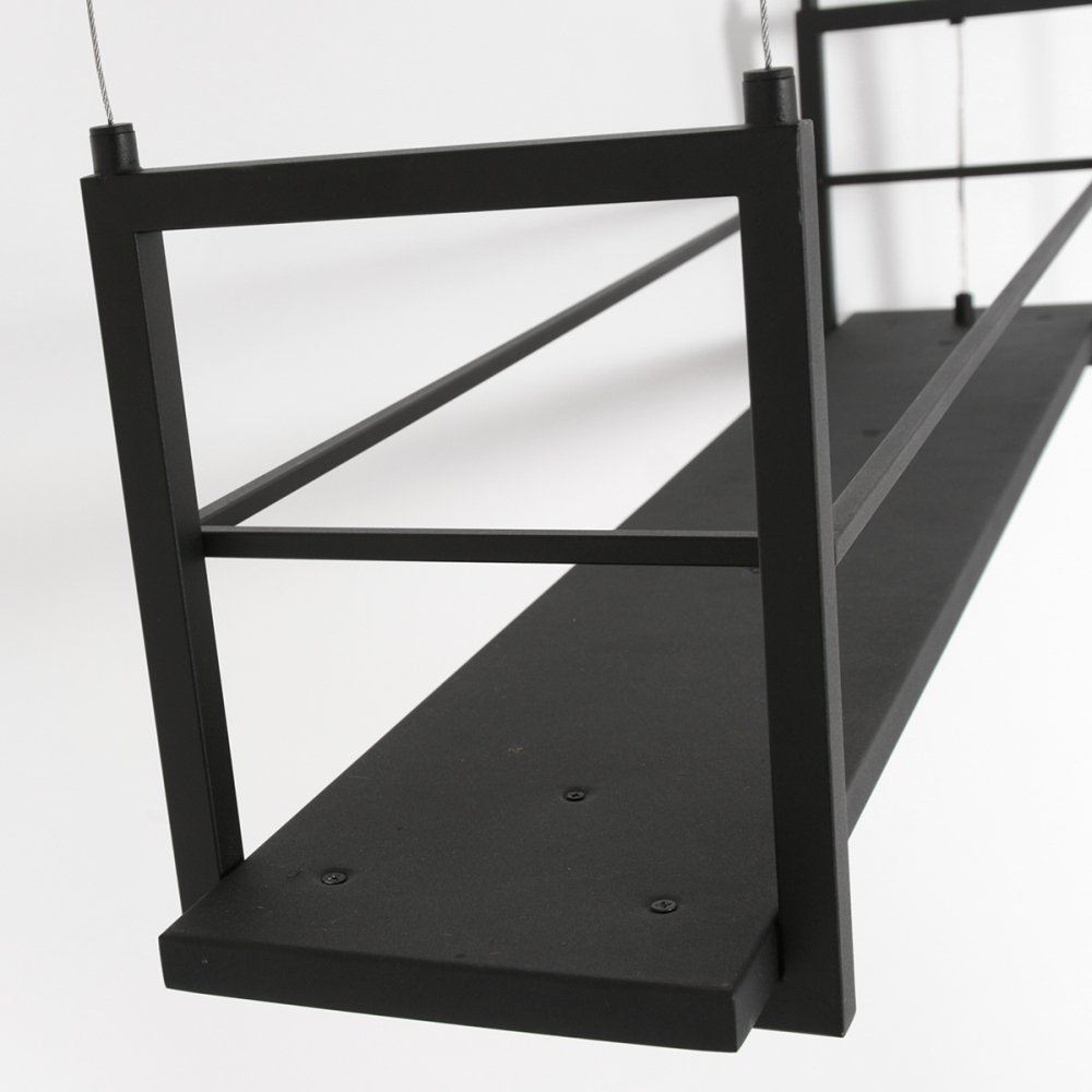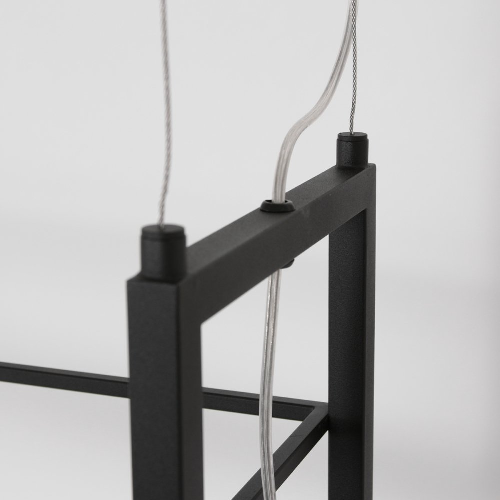 The square design of the light in matte black adds a modern touch to your space. The pendant light is height-adjustable, ranging from a minimum of 100x21x40 cm to a maximum of 100x21x150 cm. Additionally, it features a shelf measuring 100x20x24 cm.