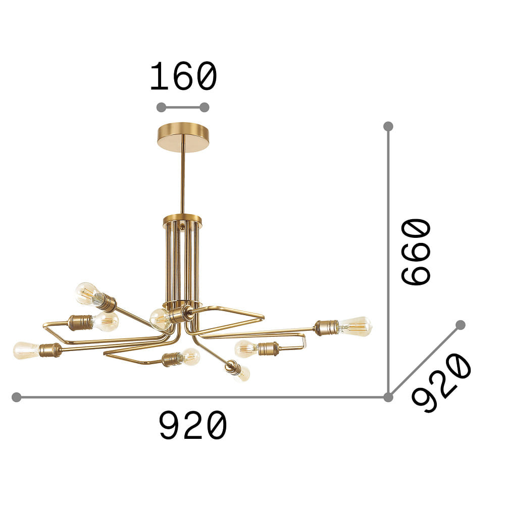Pendant luminaire TRIUMPH, 8 flames, Ø 92cm, E27, antique brass