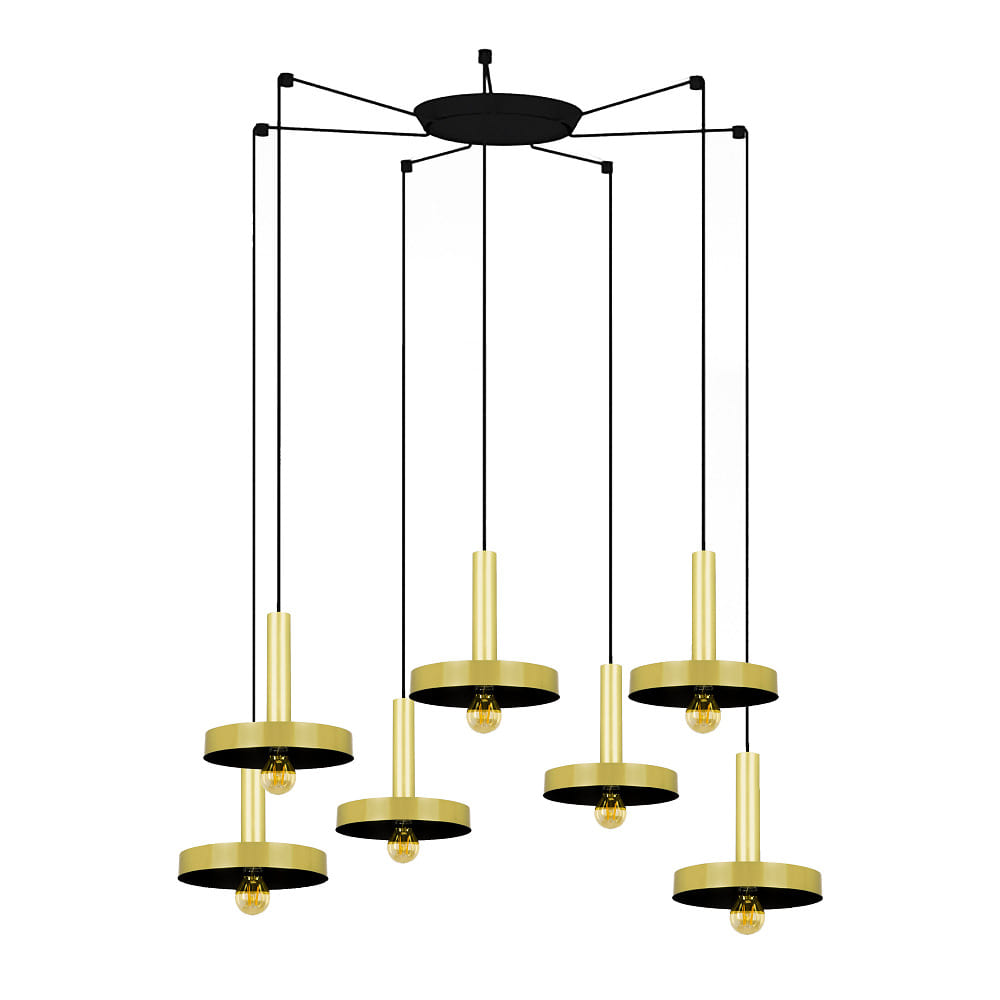 pendant luminaire WHIZZ 7 flames E27 IP20, gold, black