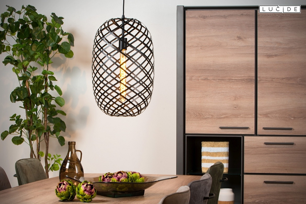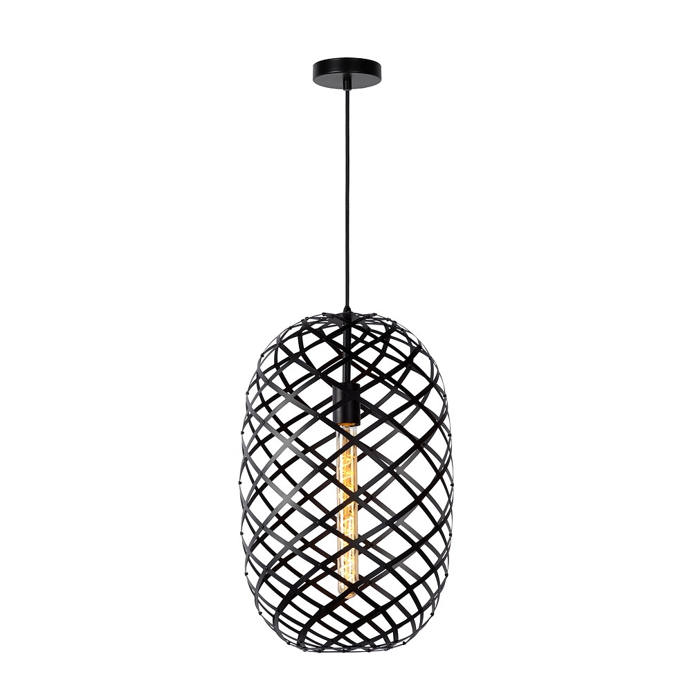 pendant luminaire WOLFRAM oval E27 IP20, black