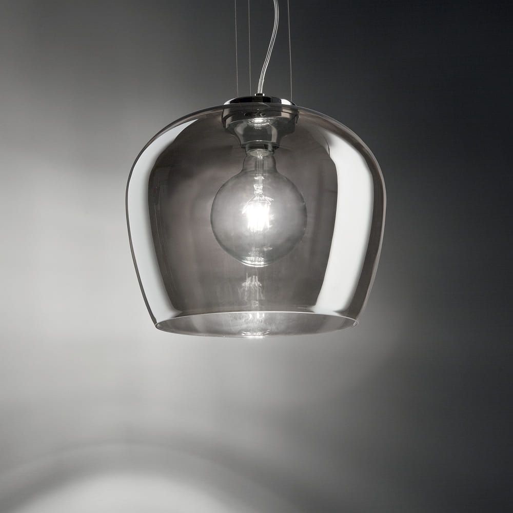 Pendelleuchte BLOSSOM, Ø 32cm / H 243cm, E27, Rauchglas / Chrom / Kabel transparent