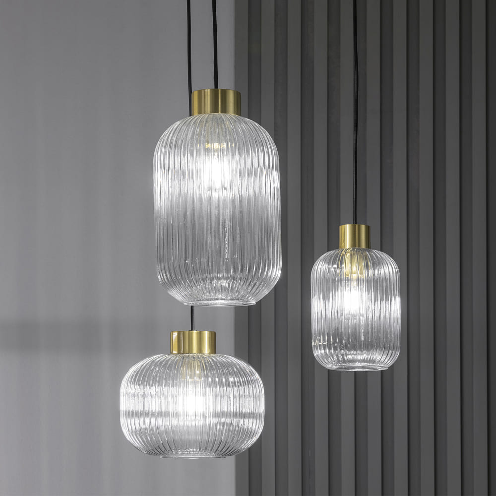 Pendelleuchte MINT-3, Ø 24cm, E27, Rauchglas / Messing satin