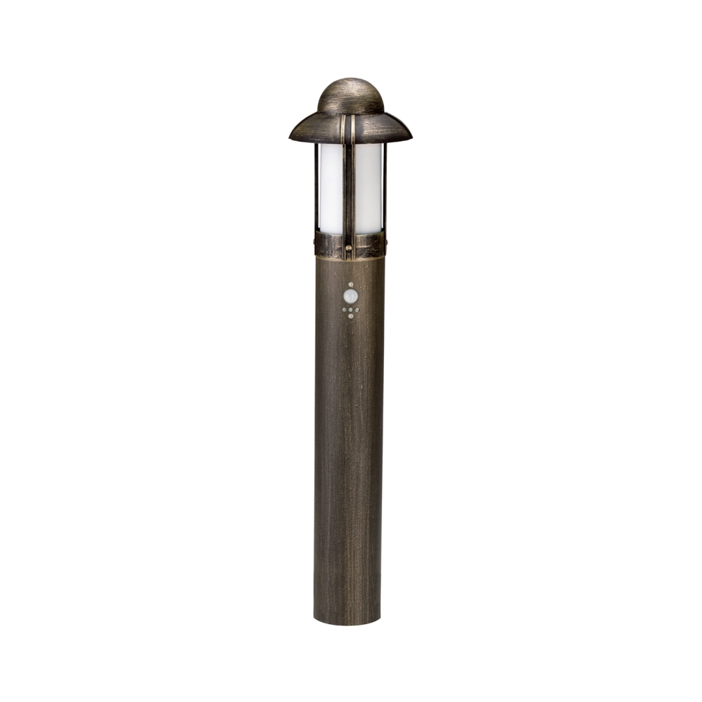 Pollerleuchte Landhausstil Nachtwächter Typ Nr. 2025 mit Bewegungsmelder, IP44, Höhe 90cm, E27, Alu-Guss / Opal, Braun-Messing