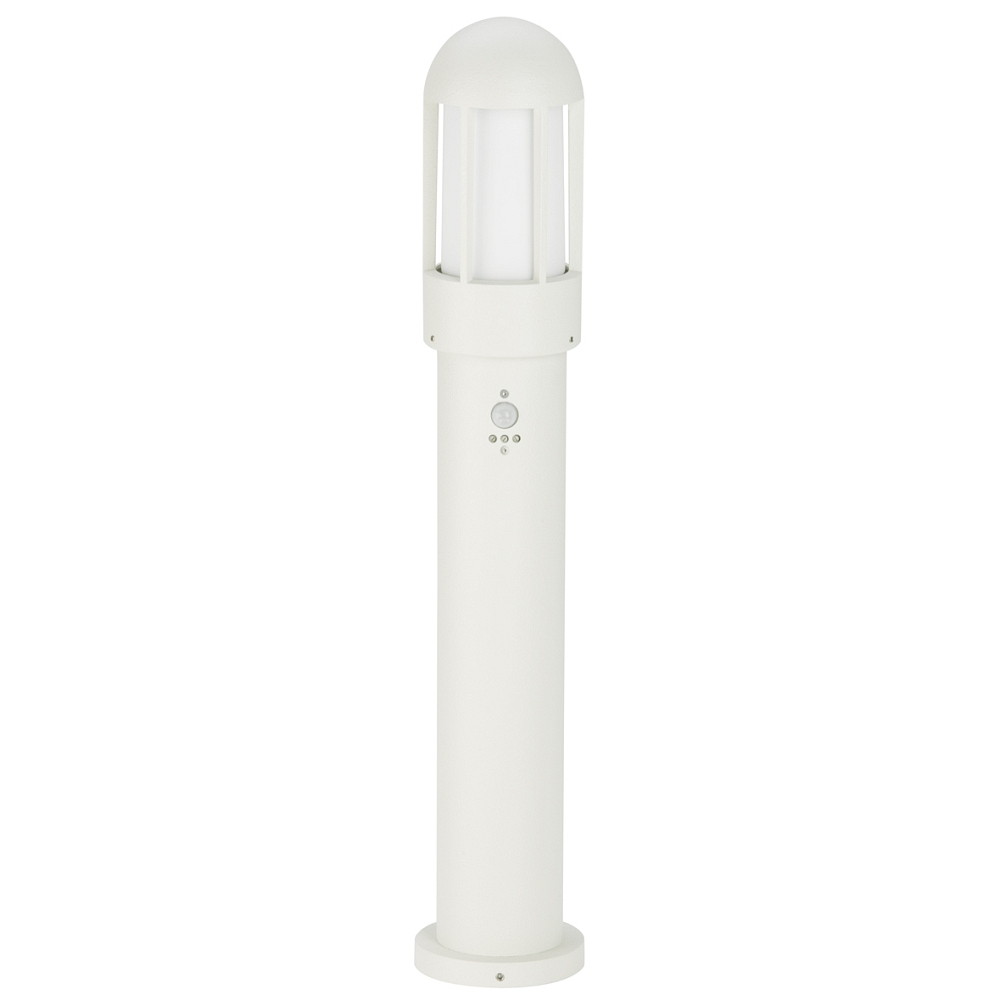 Pollerleuchte Typ Nr. 2015 mit Bewegungsmelder (Typ 2002), IP44, Höhe 83.5cm, E27 QA55, Alu-Guss / Opalglas, Weiß matt