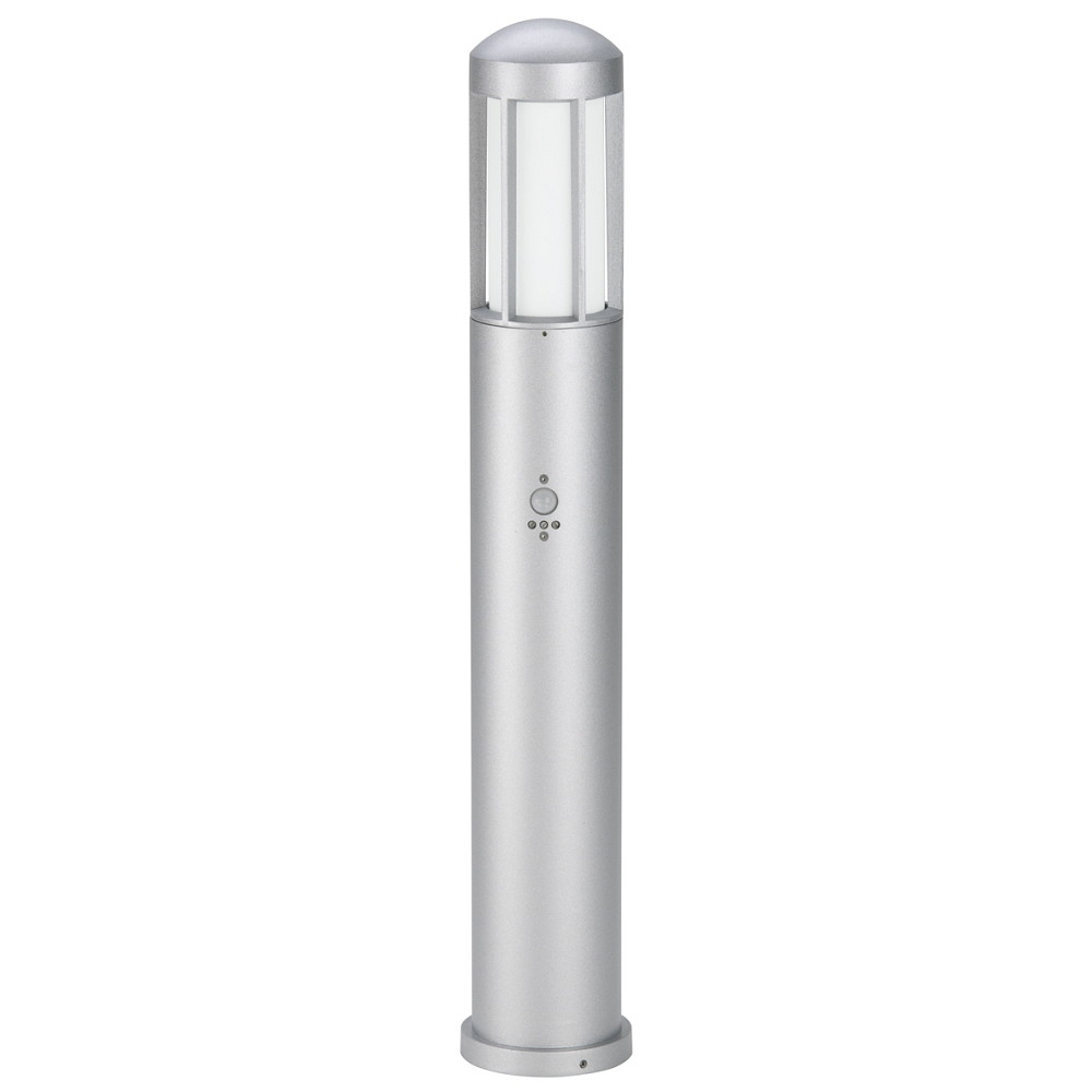 Pollerleuchte Typ Nr. 2221 mit Bewegungsmelder (Typ 2209), IP44, Höhe 90cm, E27 QA55 max. 57W, Alu-Guss / Opalglas, Silber