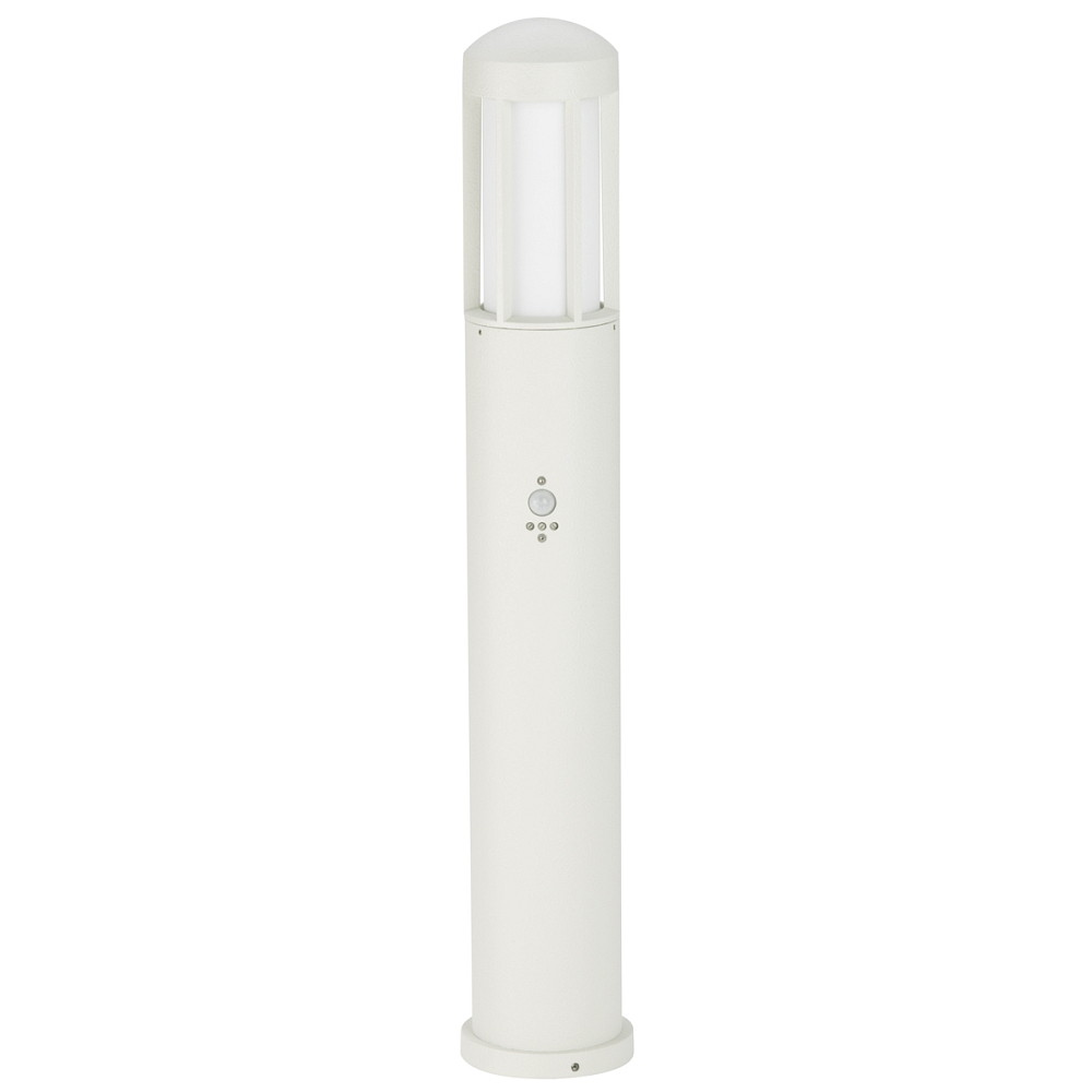 Pollerleuchte Typ Nr. 2221 mit Bewegungsmelder (Typ 2209), IP44, Höhe 90cm, E27 QA55 max. 57W, Alu-Guss / Opalglas, Weiß