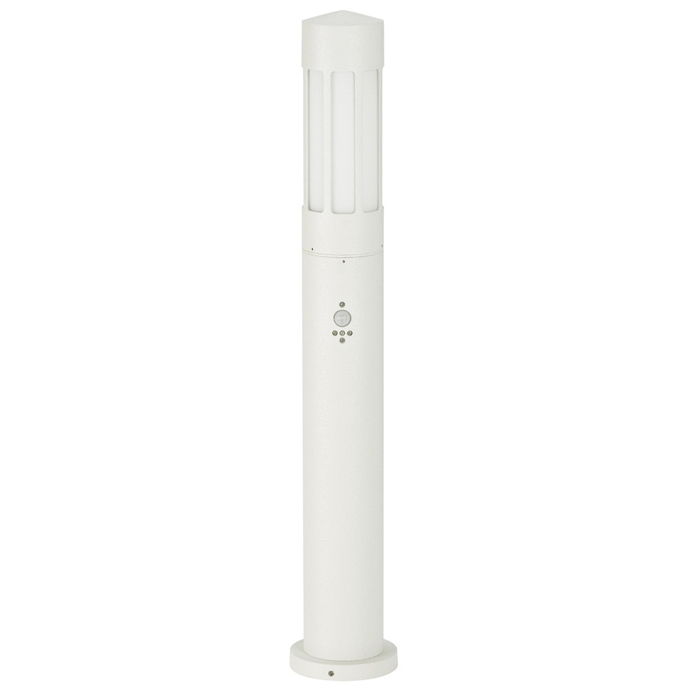 Pollerleuchte Typ Nr. 2249 mit Bewegungsmelder (Typ 2019), IP44, Höhe 90cm, E27 QA55 max. 57W, Alu-Guss / Opalglas, Weiß