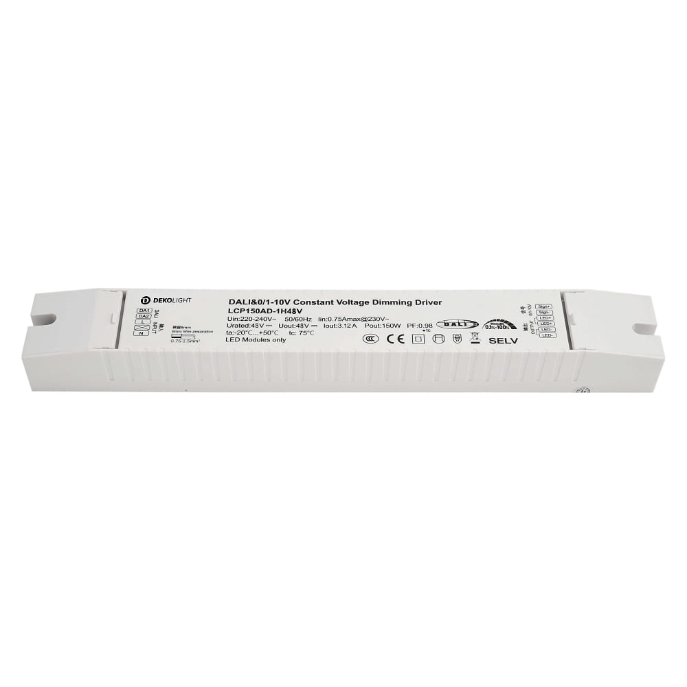 The power supply (CV, DC) BASIC from Deko-Light is a reliable and powerful product specifically designed for indoor use. With a power consumption of 150W and an average lamp lifespan of 50000 hours, this power supply is ideal for operating LED lamps.