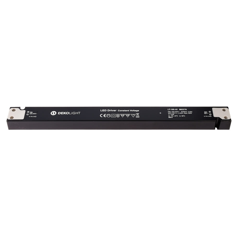 The LONG-FLAT LT-100-48 power supply from Deko-Light is easy to install and can be used for various lighting purposes. The black color matches any decor and provides an elegant look.