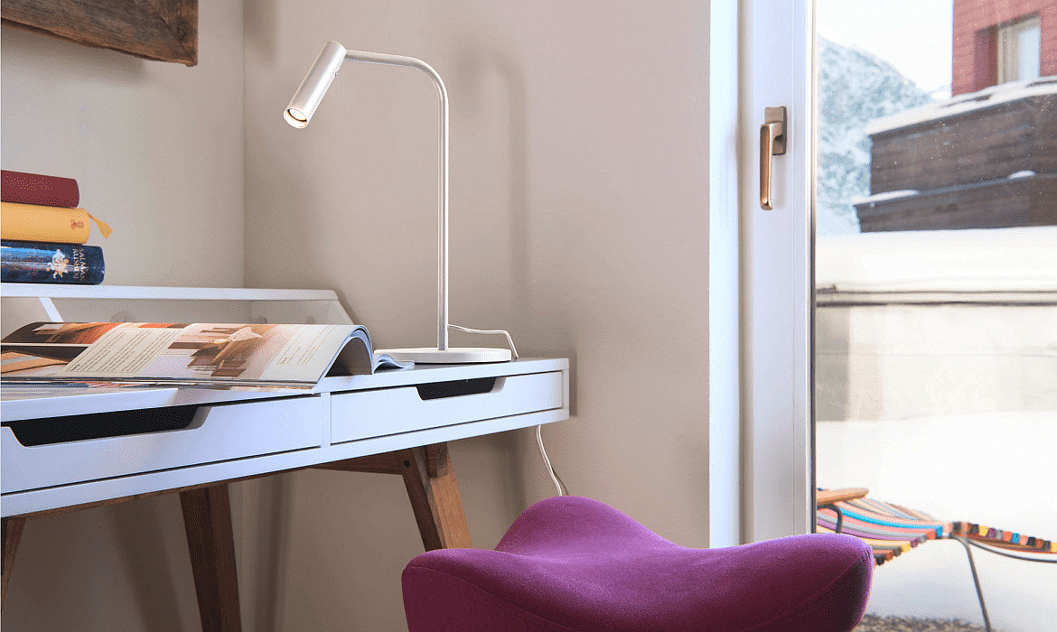Thanks to its rotatable and swiveling design, the KARPO FL table lamp is ideal for use on furniture or tables. With a weight of 1.454kg and a 230cm long power cable, the lamp is flexible and easy to install.