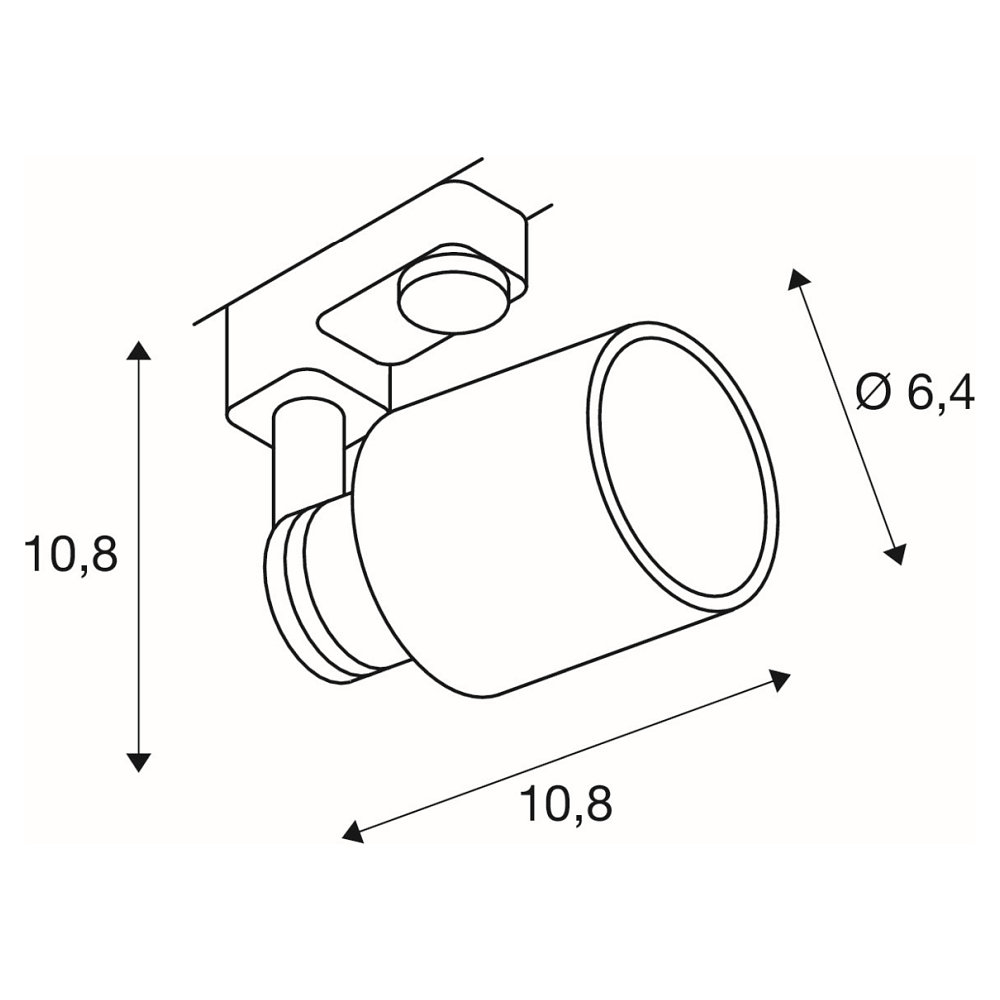 A 3-phase adapter is included in the delivery. The spotlight has a maximum lamp size of 5.1cm and is suitable for indoor use only. It can be dimmed with dimmable light sources.