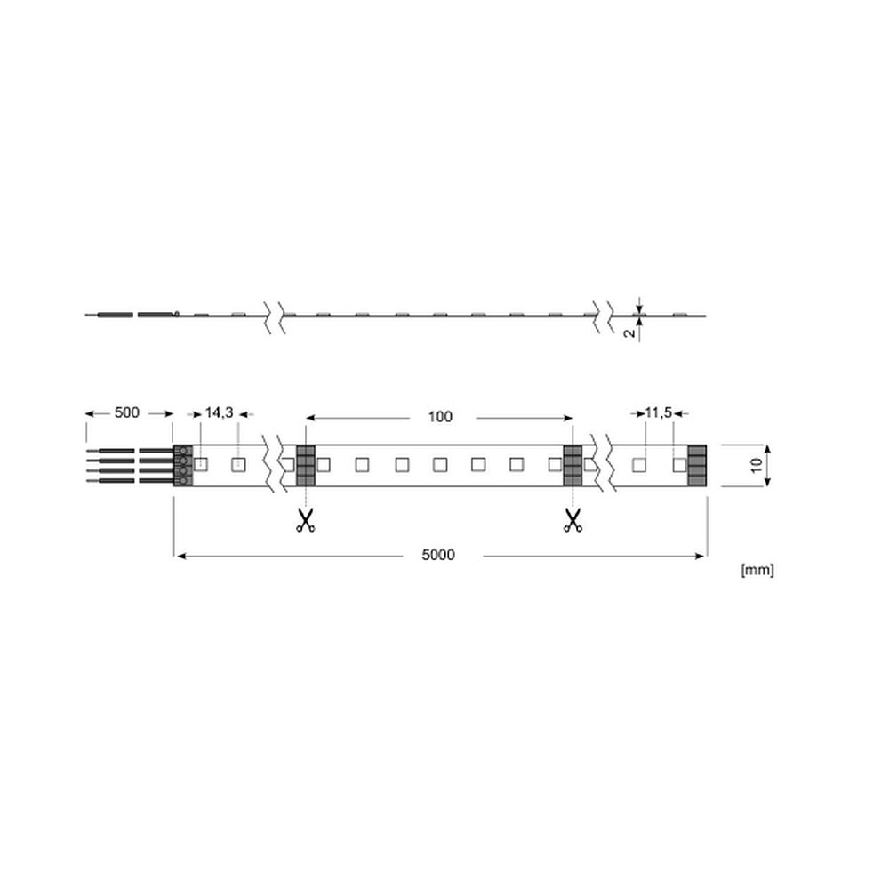 Das Anschlusskabel des LED-Streifens ist auf beiden Seiten angelötet und hat eine Länge von jeweils 50 cm. Der Streifen ist teilbar alle 10 cm und kann somit einfach an Ihre individuellen Anforderungen angepasst werden. Für den optimalen Betrieb wird empfohlen, den Streifen mit einem Mehrkanal LED-Dimmer zu verwenden.