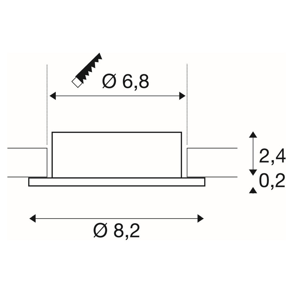 The item number for the ceiling recessed luminaire is 1007333. Included in the delivery are leaf springs and clip springs for easy installation. The installation opening circle has a diameter of 6.8 cm.