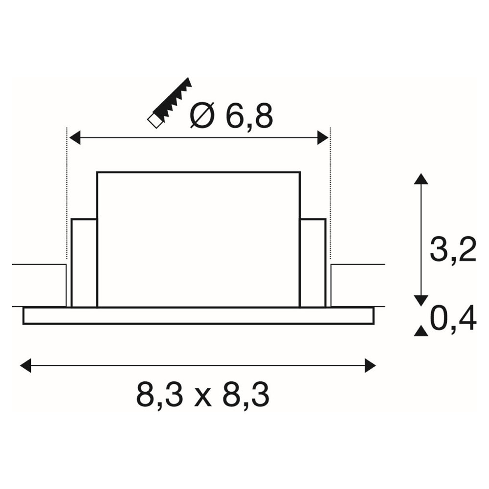 The recessed ceiling light NEW TRIA® 68 is a square luminaire with IP65 protection class, which is delivered including glass. With a cut-out opening of 6.8 cm and dimensions of 8.3 x 8.3 x 3.55 cm, this recessed light is ideal for installation in ceilings.