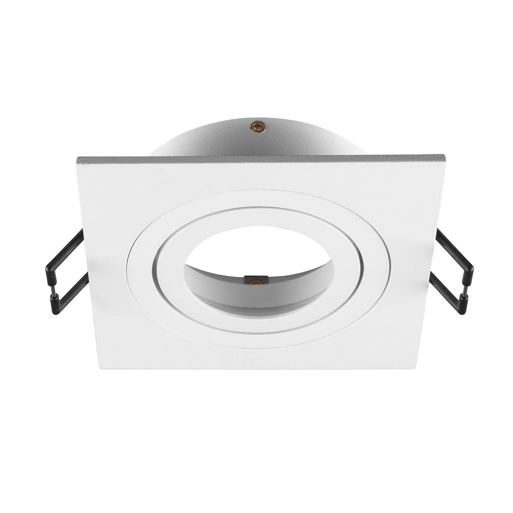 The recessed ceiling luminaire includes leaf springs and clip springs for easy installation. The size of the mounting ring is length 9 cm, width 9 cm, and height 2.6 cm.