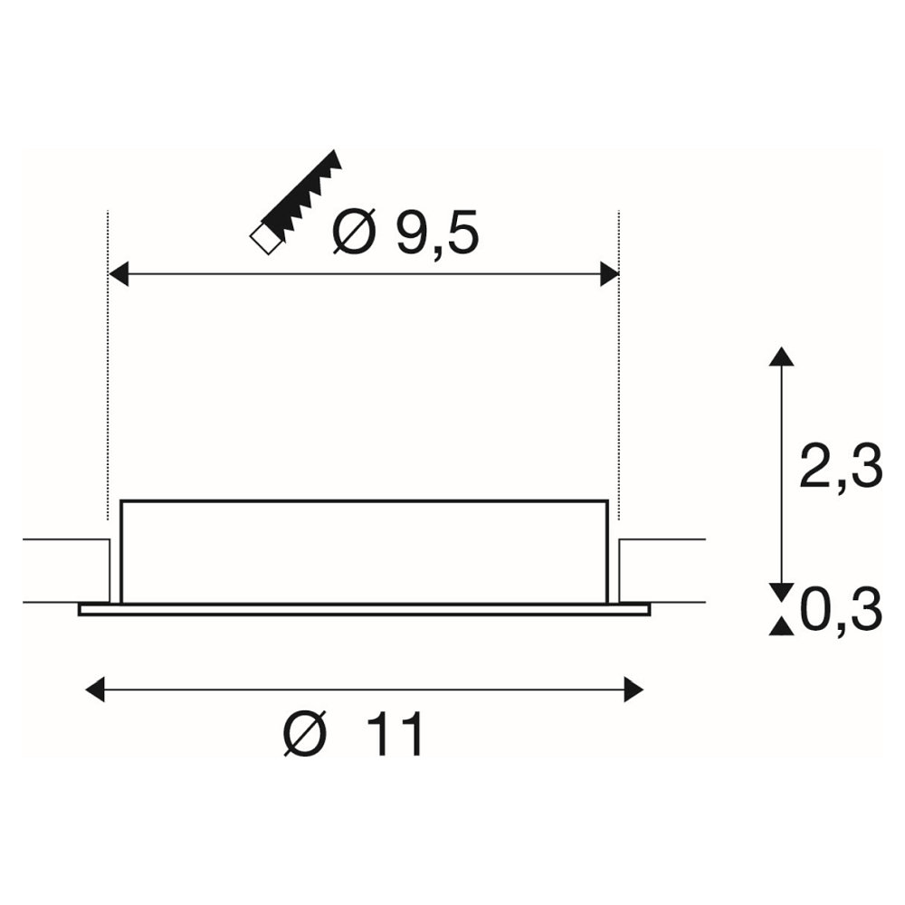 The recessed ceiling light NEW TRIA® 95 is perfect for discreet and modern lighting in your rooms. With dimensions of 11 cm in diameter, length, width, and height, and a slim design of only 2.6 cm, this light elegantly blends into any ceiling.