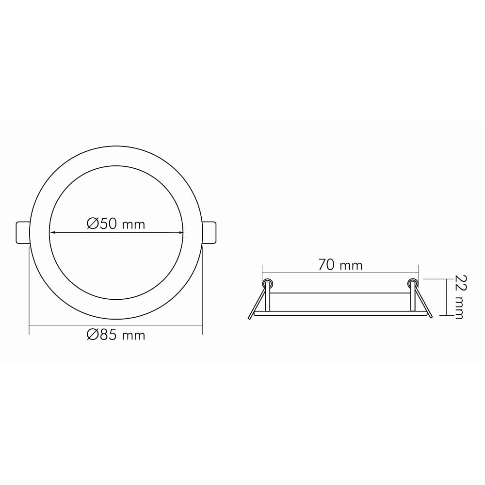 The FLAT 50 R LED panel is designed to be especially flat, with an installation depth of only 2.5 cm and a diameter of 8.9 cm. The cut-out diameter is 7.2 cm, facilitating installation into existing ceiling surfaces. The housing is made of sturdy aluminum and steel, while the light output surface is manufactured from high-quality polymethyl methacrylate (PMMA). With an IP44 protection rating, the luminaire is protected against splashing water, providing additional safety.