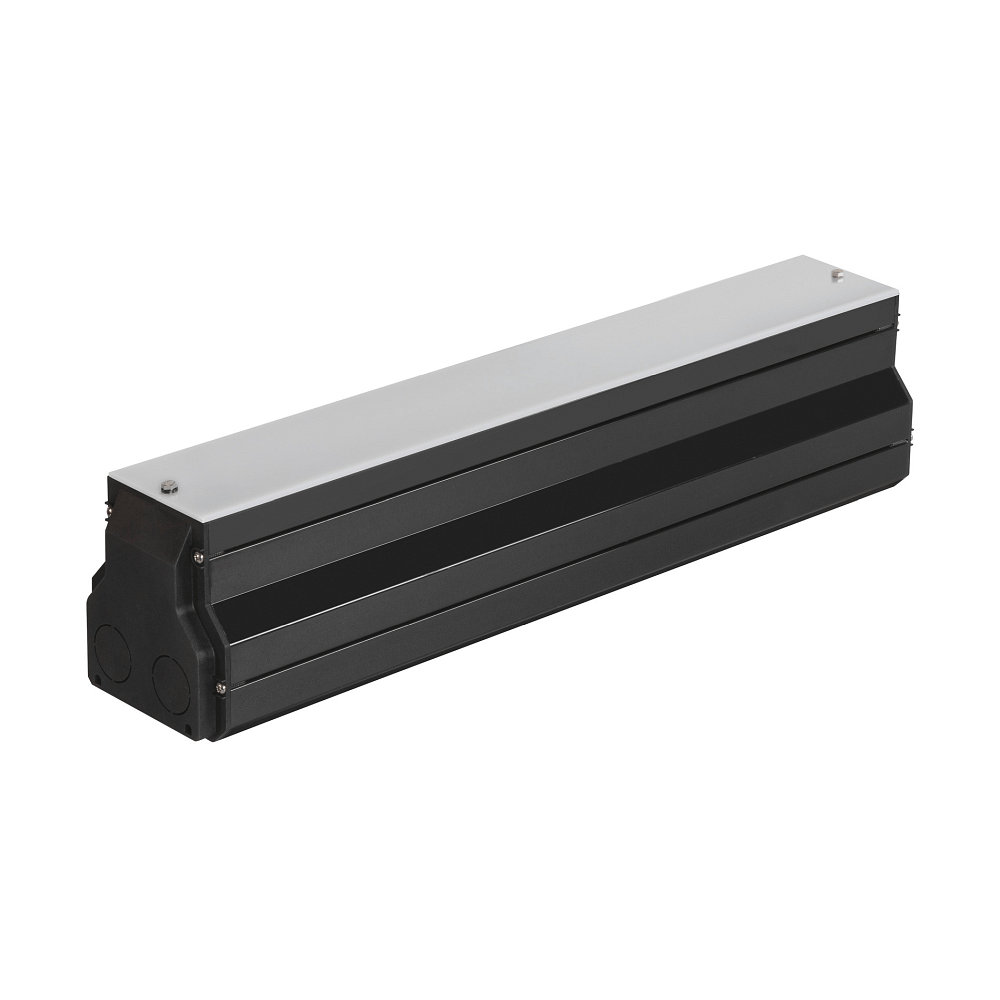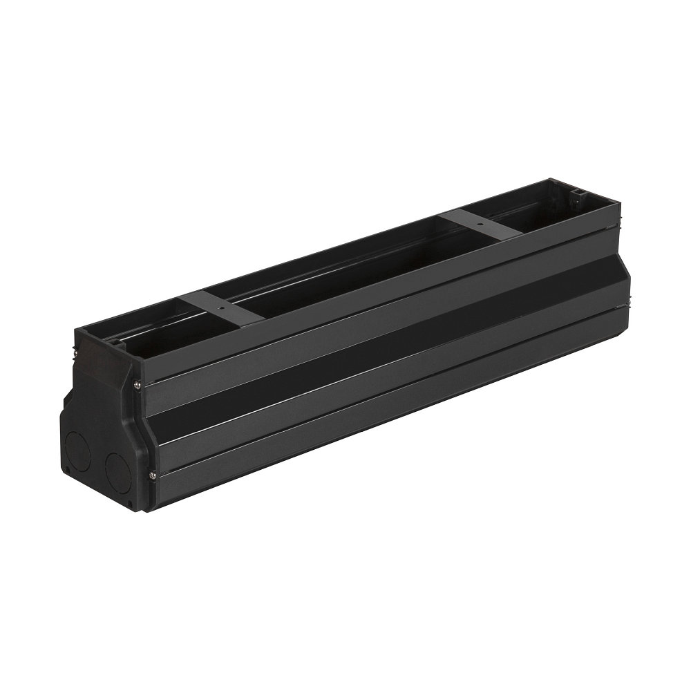 This mounting housing serves as a perfect accessory for the LED recessed floor light DASAR® 600. It is in black color, making it suitable for various designs and environments. The angular shape of the light provides a modern and appealing appearance.
