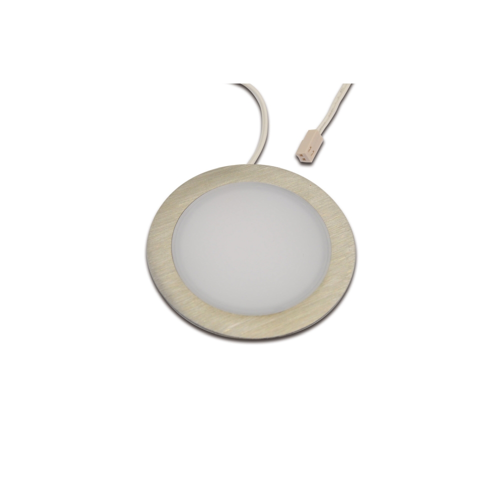 The LED Diffuser Recessed Light FAR 68 is a round light that can be mounted on furniture as well as ceilings. With a plug type of LED 24 plug system, it is perfect for indoor use. The light has a stainless steel color and features an opal light color that is neutral white.