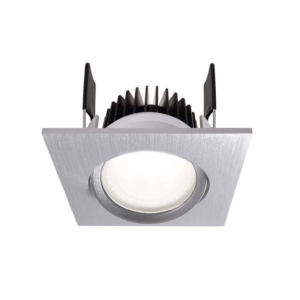 Recessed LED ceiling luminaire COB-68-350mA-SQUARE, current constant, 6W, 4000K, 45°, brushed silver