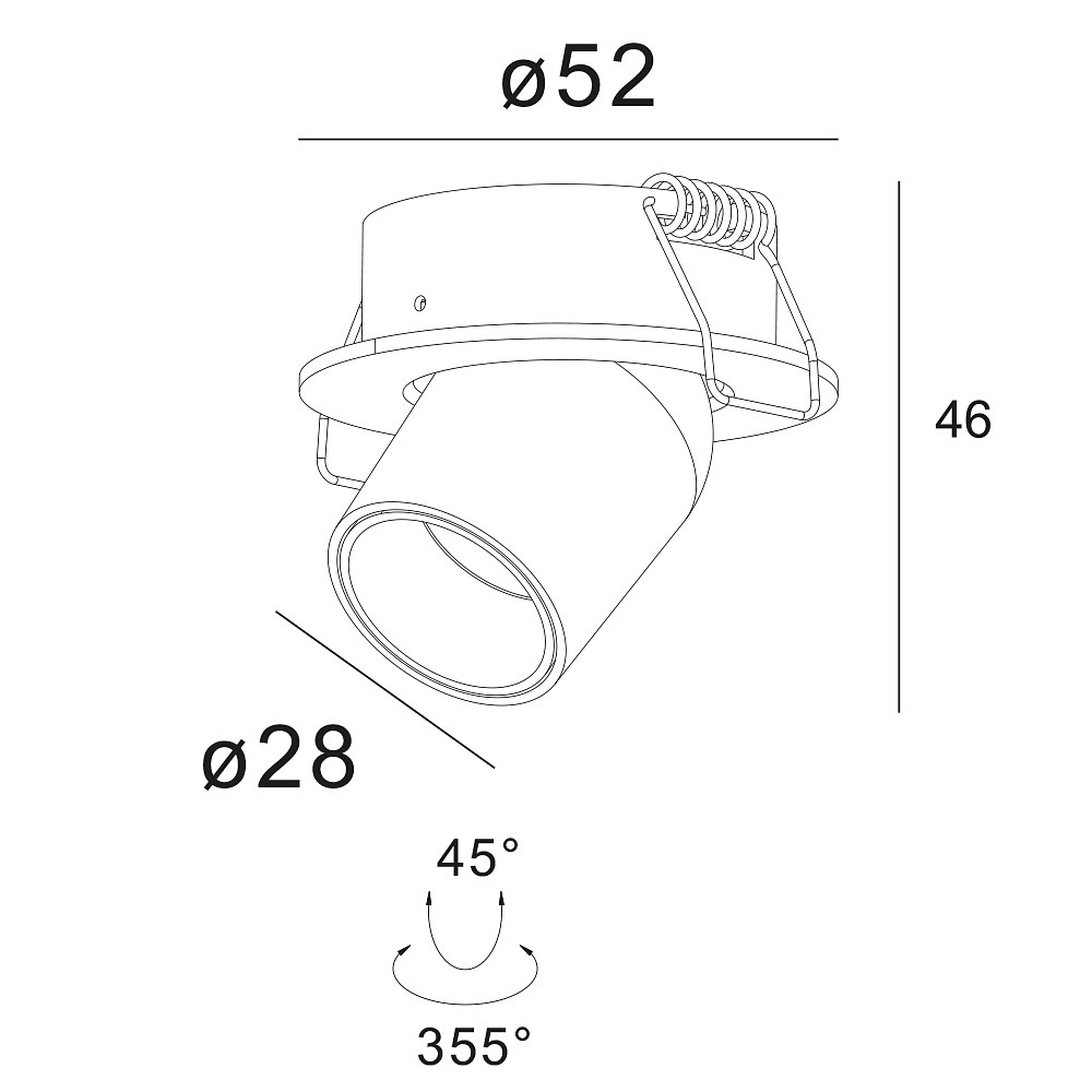 Recessed LED luminaire Pipe MiniAMP, 3W, 24V DC, rotatable and swivelling, dimmable, 3W 3000K 240lm 50°, white