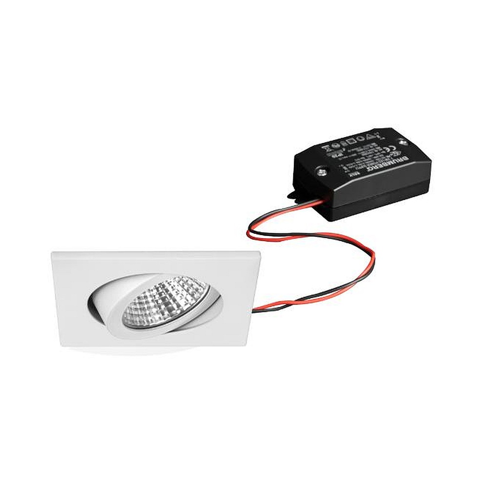 Recessed LED spot set BB05 incl. converter, IP20, square, 230V, 6W 3000K 640lm 38°, swivelling 30°, white