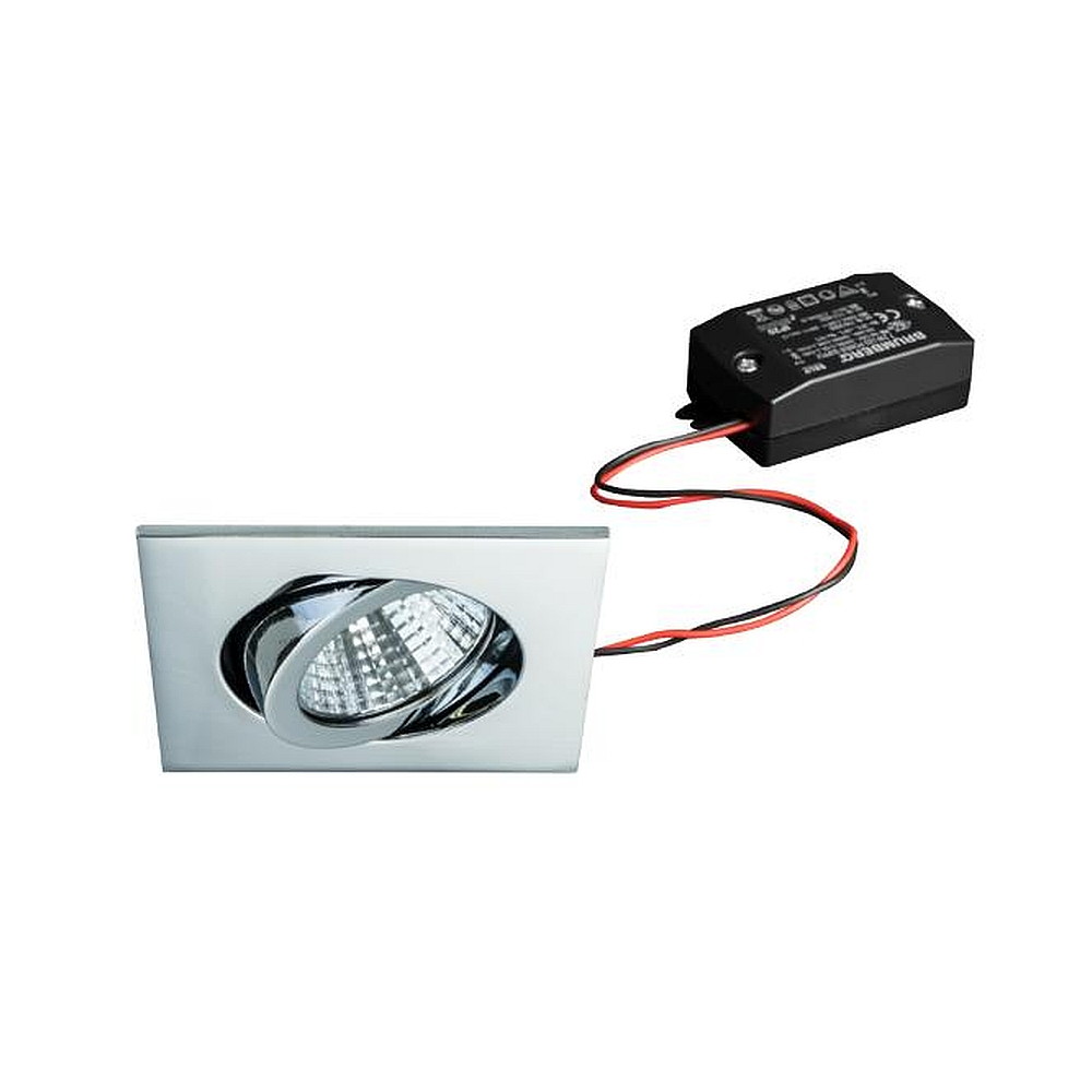 Recessed LED spot set incl. converter, IP20, square, 230V, 7W 3000K 740lm 38°, swivelling 30°, chrome